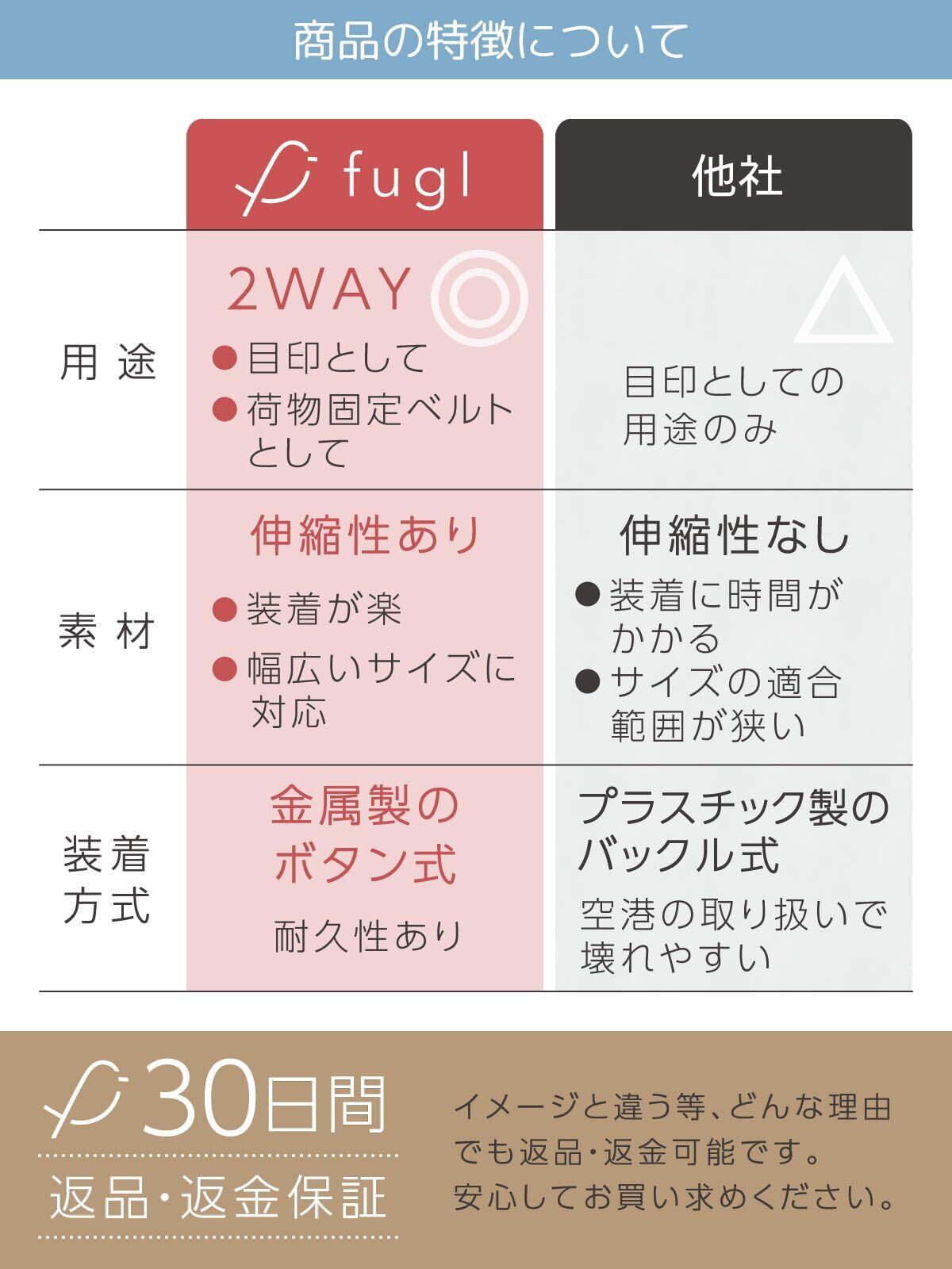 【るるぶ掲載x3秒で装着】fugl スーツケースベルト キャリーケースベルト スーツケースバンド キャリーケースバンド ストラップ バッグとめるベルト 目印 海外旅行 便利グッズ