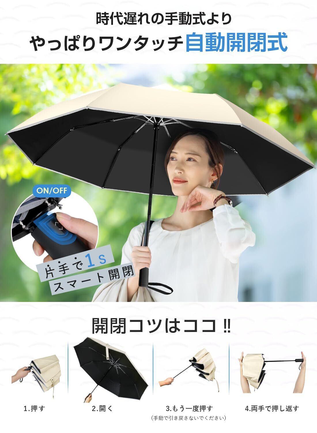 折りたたみ傘 ワンタッチ自動開閉 大きい おりたたみ傘 直径104cm【 超撥水加工・ 8本骨 晴雨兼用】耐風 豪雨対応 反射テープ 折り畳み傘 男女兼用 日傘 UVカット 紫外線遮断 反射テープ 軽量 折畳傘 収納ポーチ付き