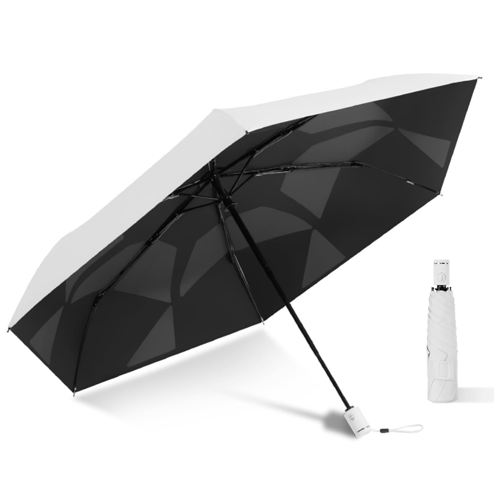 【紫外線対策・遮光遮熱】UPF50+の高い紫外線防止効果を誇り、99.9%の紫外線をシャットアウトします。高密度の傘布と日焼け止めの黒のポリウレタンコーティング加工を組み合わせた、日焼けを防ぐために必要なUVカットの性能を兼ね揃えた、紫外線対策にはピッタリのアイテムとなっています。これにより、真夏でも外出も涼しく快適に過ごせます。この折り畳み傘は夏の必需品で、日差しを気にせず、心地よい時間をお楽しみください!