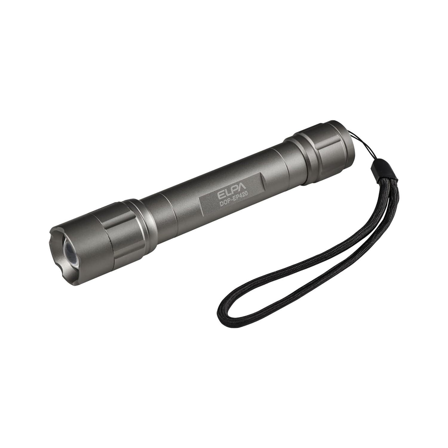 エルパ(ELPA) LED懐中電灯 防水 明るさ250ルーメン ハンドストラップ付き 電池式 電池残量表示 シルバー DOP-EP420