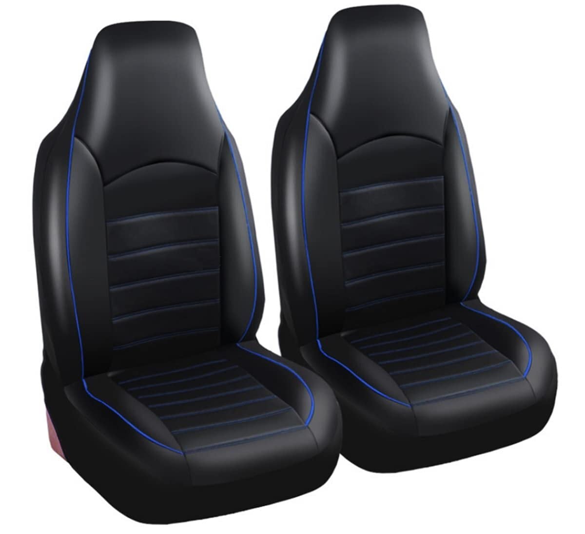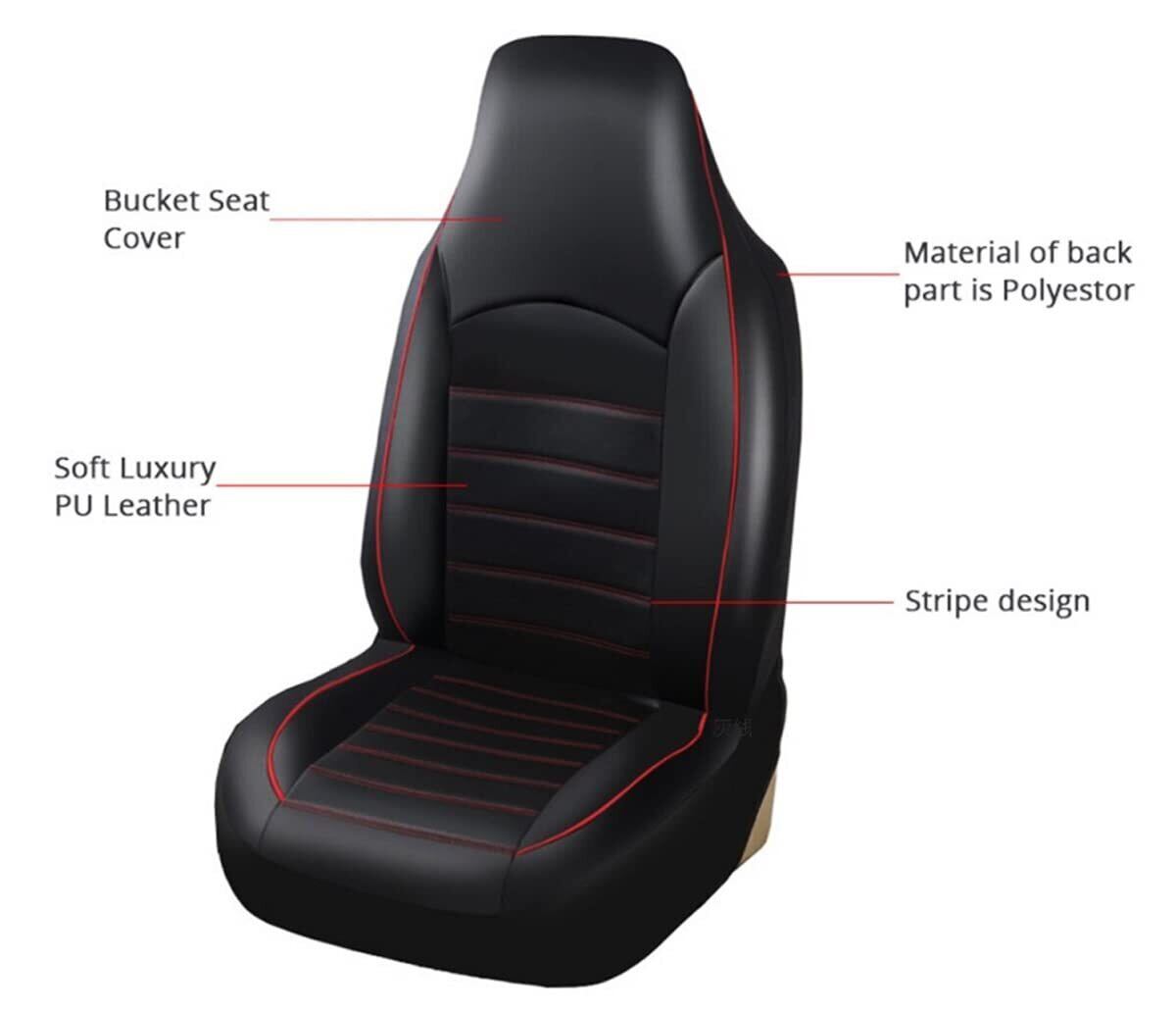 【商品仕様】 ・セット内容:シート カバー 2個セット(シートのカラーは ブラック の レザー 調 ) ・背もたれ部 サイズ:縦80cm×幅48cm〜60cm(場所により異なります。) ・バックレスト カバー サイズ:94cm x 30cm ・クッション カバー サイズ:57cm x 51cm ※ ヘッドレスト 部 の幅はもう少し細くなります。 座面部 縦50cm×幅50cm ・重量:1kg ・素材:PU 合成 レザー ・カラー :黒色ライン色・レッドライン色・ブルーライン色の3色からお選びください。