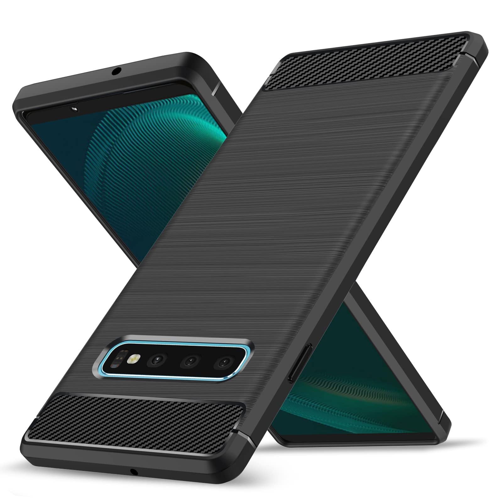 Galaxy S10 ケース 薄型 耐衝撃 シリコン 炭素繊維 レンズ保護 指紋防止 衝撃吸収 散熱加工 軽量 ソフト 手触り良い 滑り止め 取り出し易い ワイヤレス充電対応 サムスン ギャラクシーS10 [ SC-03L SCV41 ] スマートフォンケース 黒 LS-95