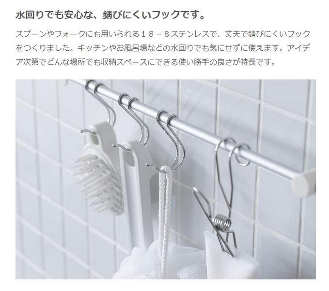 無印良品 ステンレス横ブレしにくいS字フック・大 2個入・7×1.5×14cm 38755609 シルバー