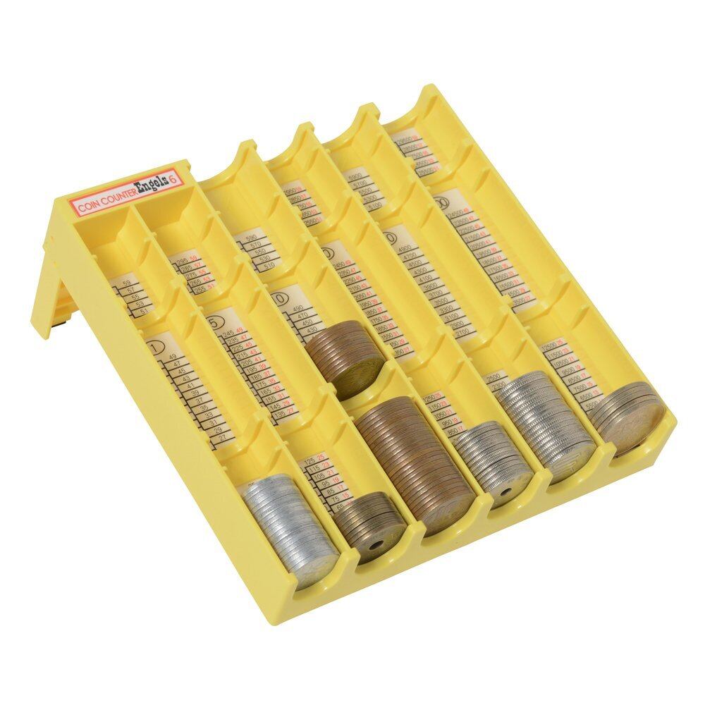 スタンド部分が折り畳めるコンパクトでカラフルなコインカウンター。