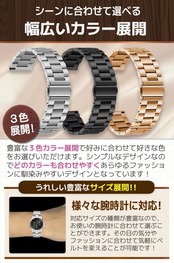 【商品特徴】①男女兼用のデザイン:シンプルなデザインで男女問わず使用可能/②幅広い対応サイズ:お使いの時計に合うサイズが見つかる/③高級感のある素材:光沢のある金属素材で高級感を演出!/④豊富なカラー展開:お洋服やお好みに合わせて選べる