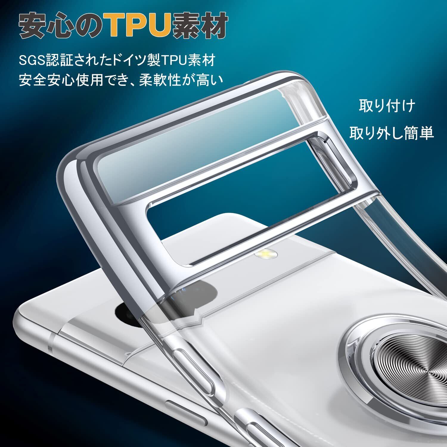 Google Pixel 7a 用 ケース クリア リング付き ピクセル 7a カバー 透明 おしゃれ OURJOY スマホケース メッキ加工 ソフトケース 耐衝撃 軽量 薄型 ストラップホール付き スタンド機能 車載ホルダー対応 携帯ケース・シルバー