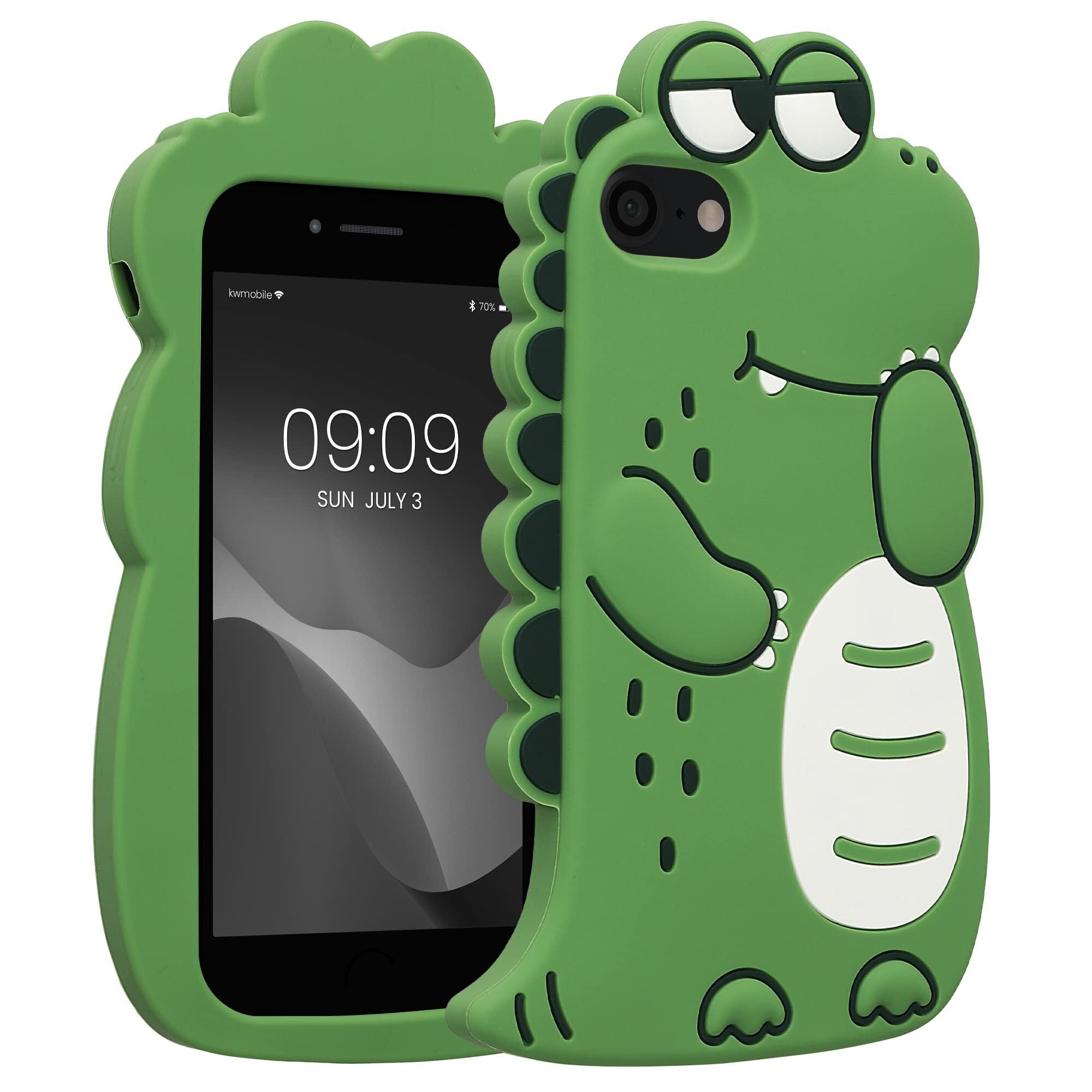 kwmobile Apple iPhone SE3 / iPhone SE2 / iPhone SE (2022) / iPhone SE (2020) / iPhone 8 / iPhone 7対応 ケース - スマホカバー - 携帯 シリコン 保護ケース キュートな恐竜デザイン 黒色/白色/緑色 対応