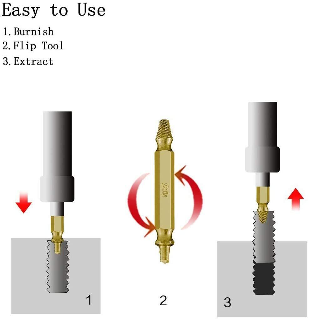 【適用範囲】電動工具でドリル部でドリルビット側に穴を深めに開けて、反側に転換して、ネジ外し側でゆっくりと左回転させ、潰れたネジを抜き取ります。ツールの両端には、ドリル部とネジ部分があり、とても便利です。 お手持ちのインパクトドライバーに装着するだけ!簡単にネジを回せるから作業時間も大幅短縮できます。また、電動工具と併用できます。