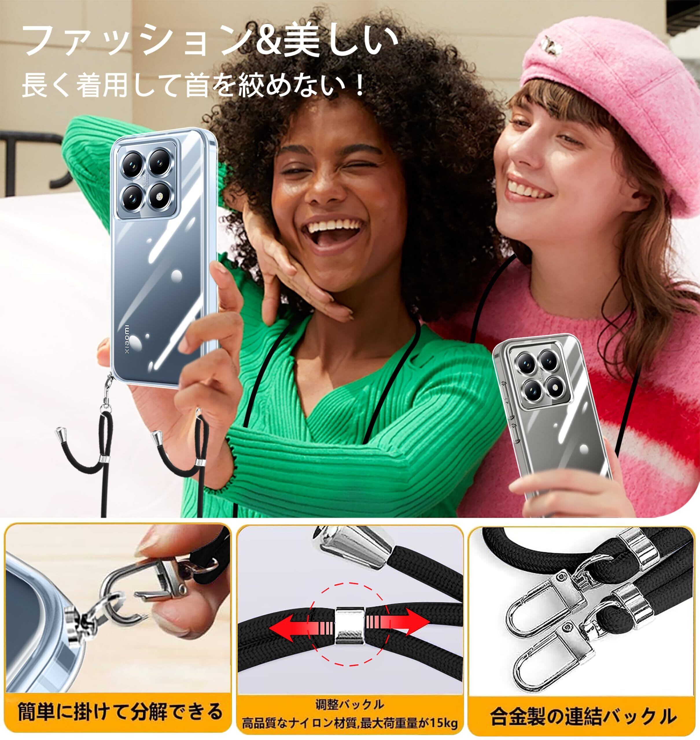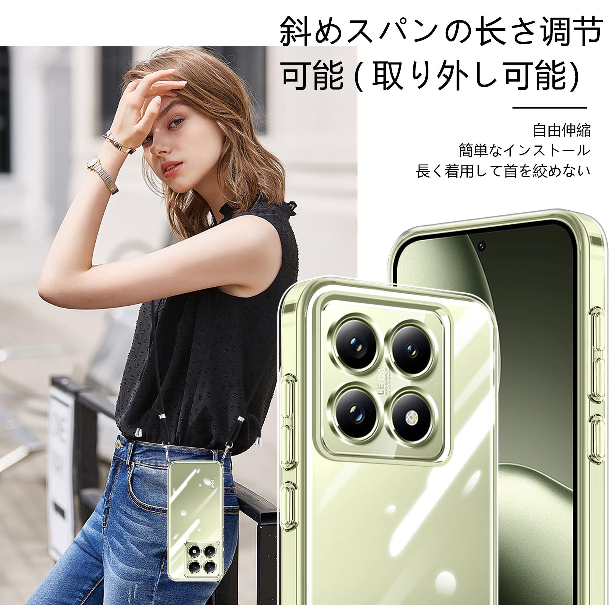 Xiaomi 14T Pro ケース クリア ショルダー シャオミ 14T Proスマホケース 耐衝撃 人気 かわいい ワイヤレス充電対応 カバー 首かけ 肩掛け TPU 薄型 軽量 ストラップ付き 取り外し可能 長さ調整可能(透明)