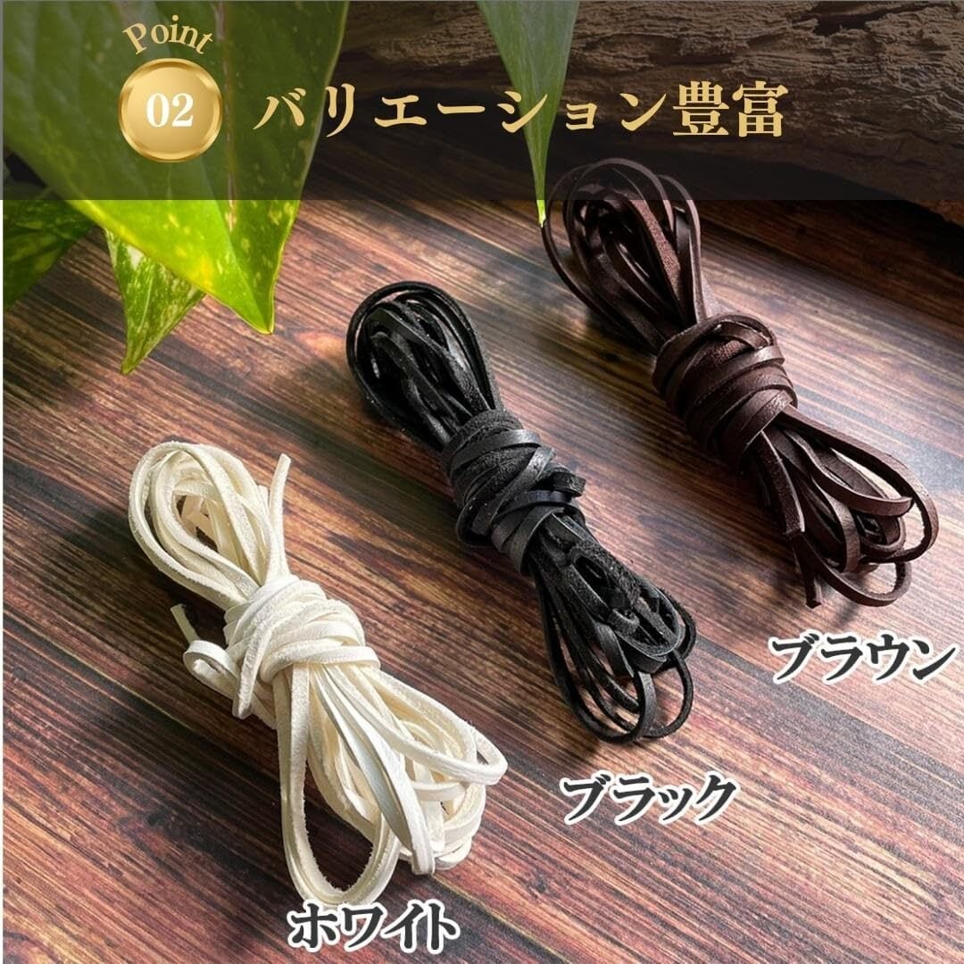 ゴロクロ 【ディアスキン 鹿革紐 平タイプ <ブラック> 】 レザー 皮ひも 皮紐 オリジナル カスタム アクセサリー ネックレス 作成用 革ひも 黒色
