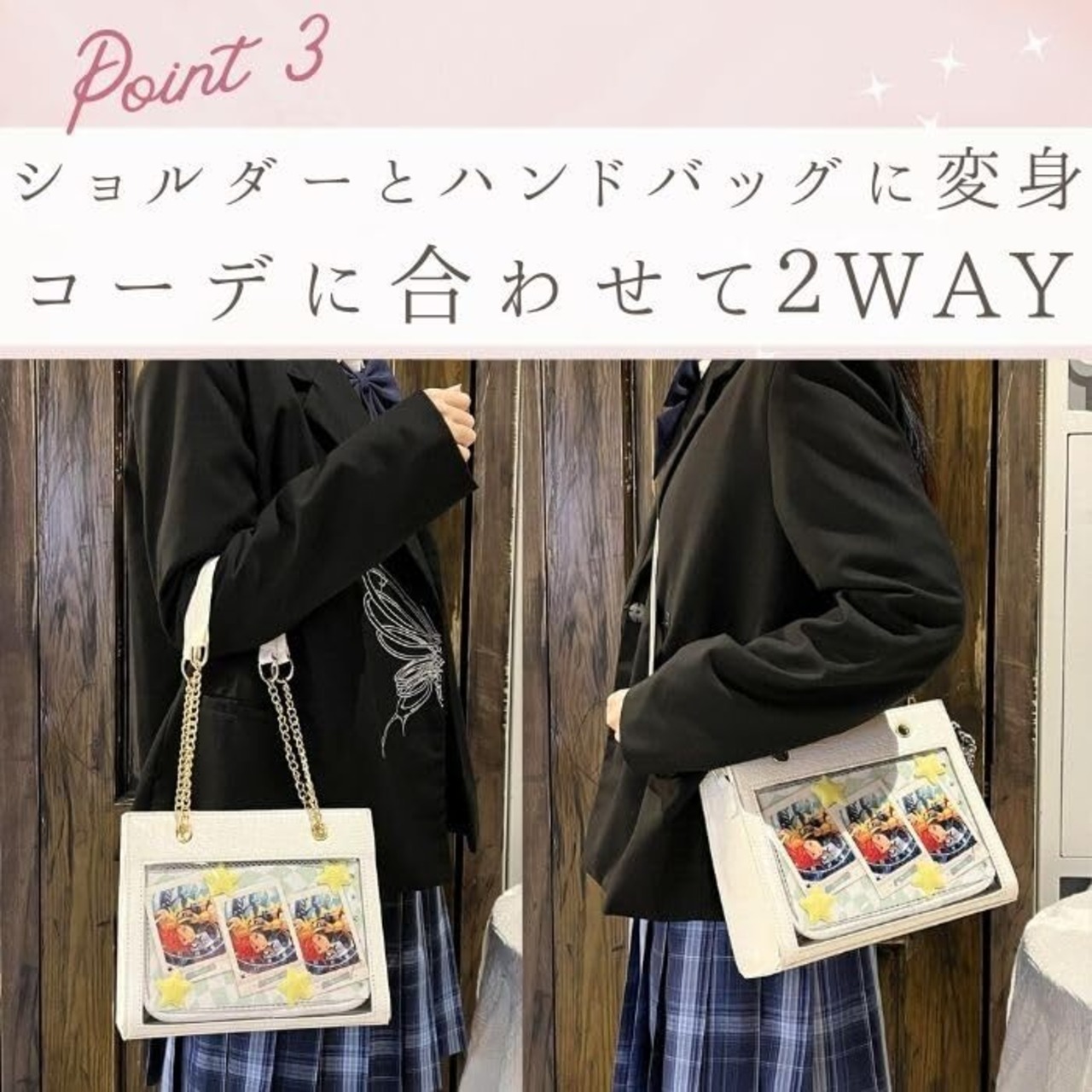 クロコ柄のデザインが可愛いショルダータイプの痛バッグ です。 トート・ショルダーの2WAYで利用できて使い勝手も抜群です◎ いずれも着脱可能です。