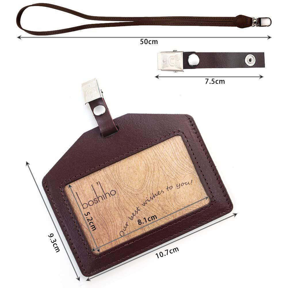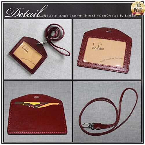 Boshiho IDカードホルダー 本革 IDカードケース 栃木レザー 横型 ネームホルダー 背面ポケット付き 社員証・名札ケース・定期入れ・パスケース おしゃれ 首掛け ネックストラップ付 リール付き 名刺ホルダー