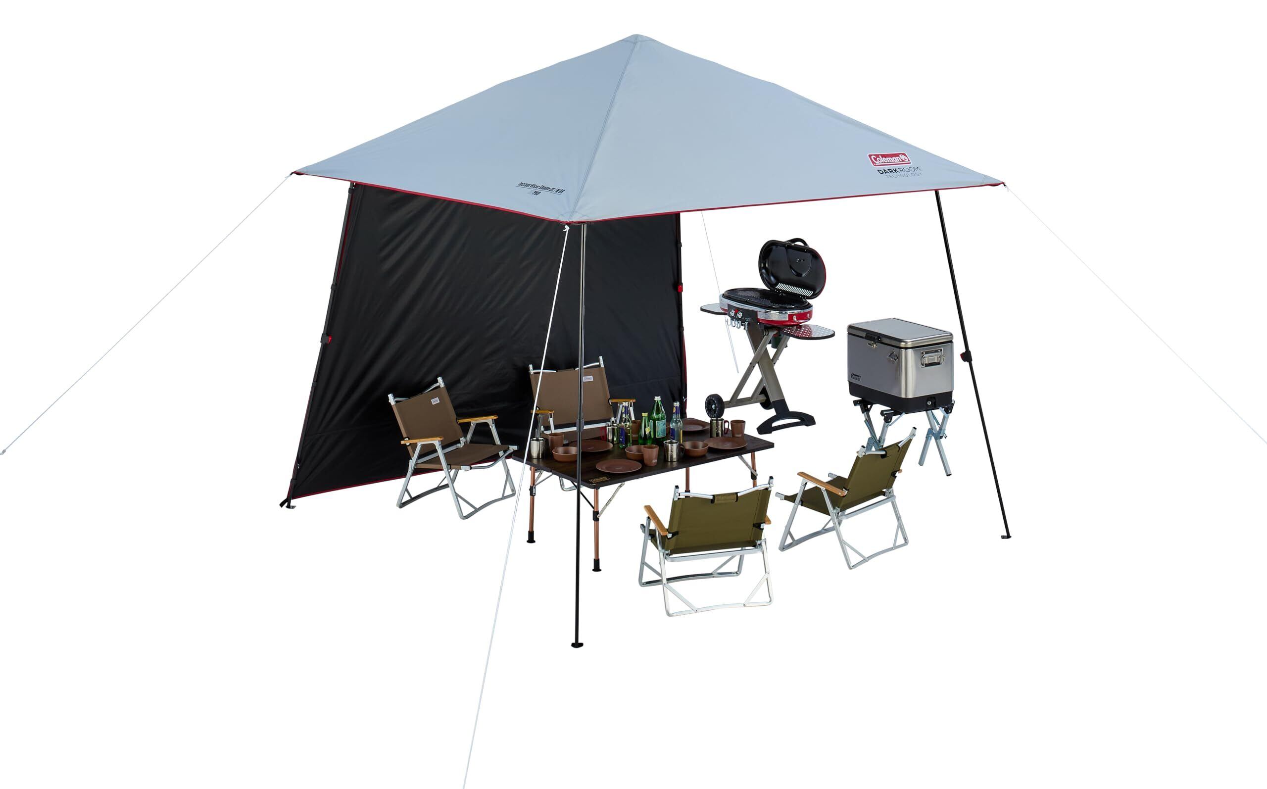 【ダークルームテクノロジー】日差しが強い日や気温が高い日は、熱中症のリスクが高まります。コールマンのダークルームテクノロジーは、日光を90%以上遮断して、シェード内の温度上昇を抑制します。