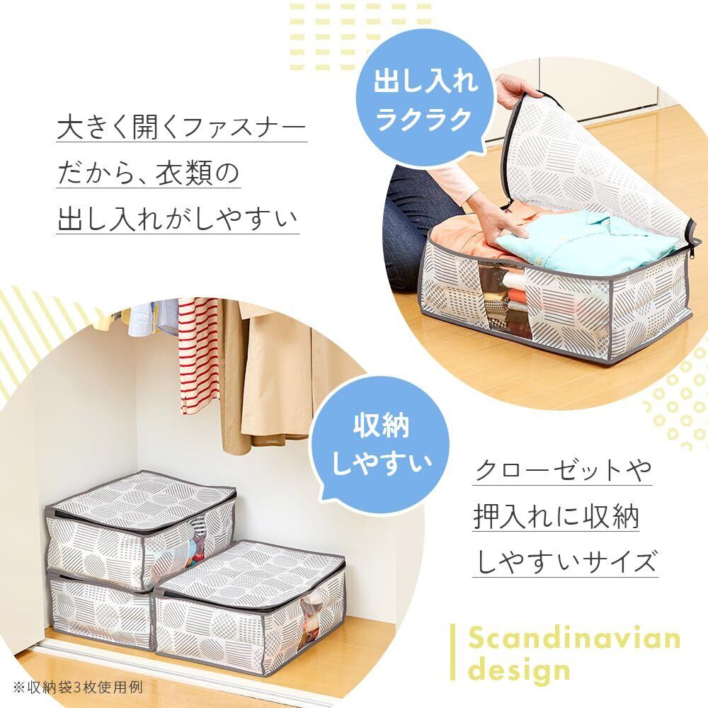 アイメディア(Aimedia) 衣類収納袋 衣類収納ケース 衣類 衣類用 収納袋 収納ケース 衣装ケース 収納ボックス 衣替え 洋服 収納 北欧柄 不織布 防塵 通気性 透明窓付き コンパクト 軽量 押入れ クローゼット おしゃれ