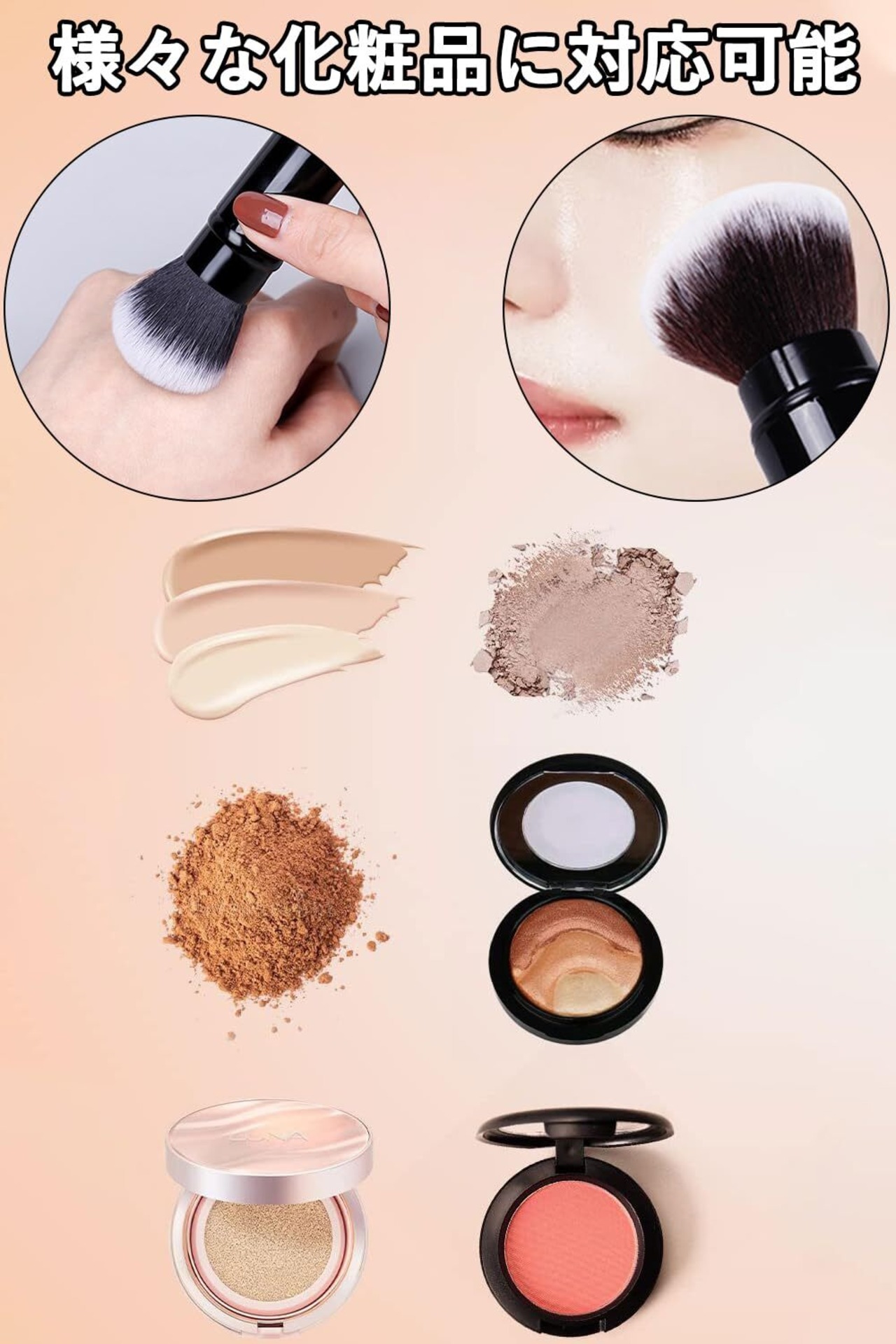 【多機能】フィニッシング、パウダー、チークなど、様々な化粧品に対応可能なメイクブラシ。