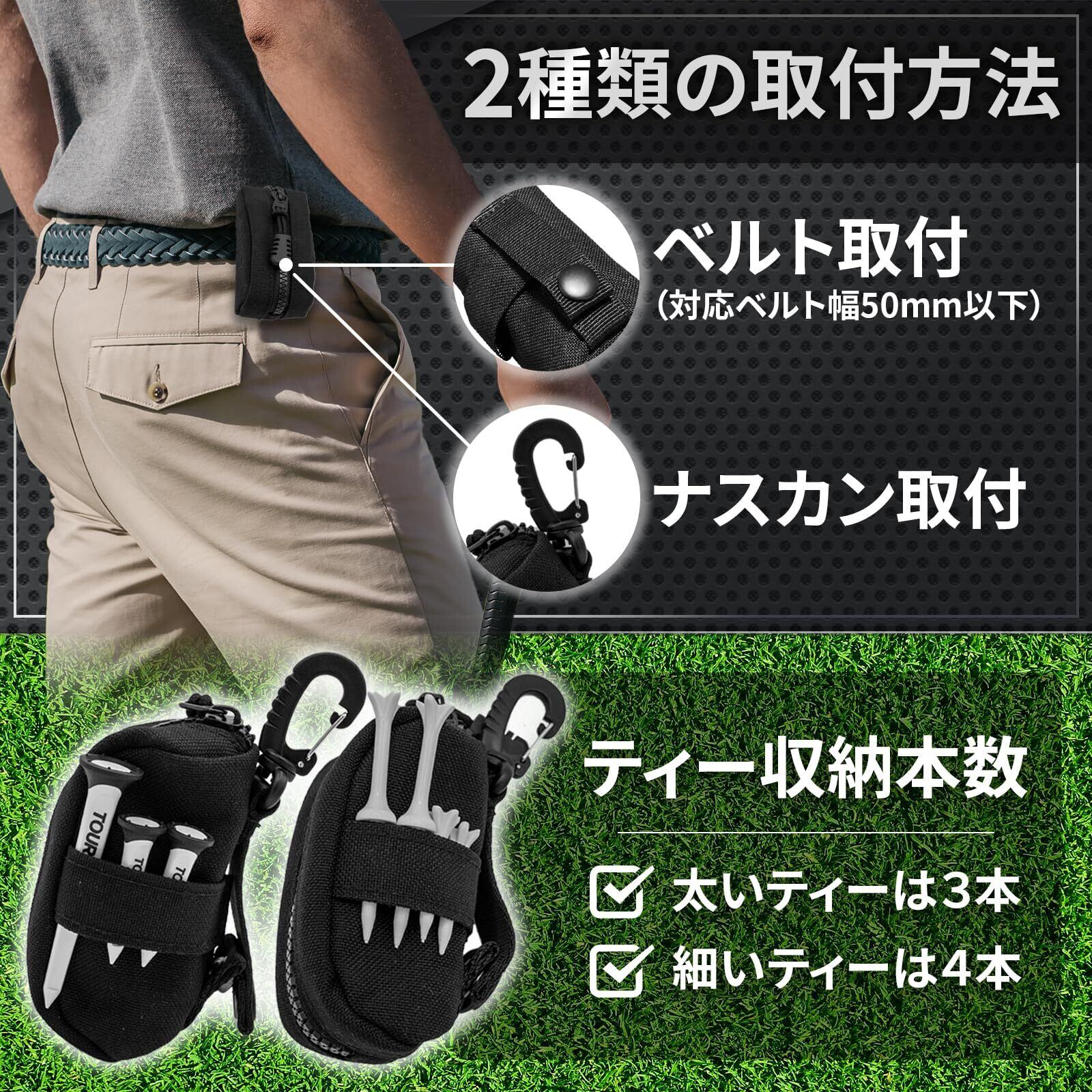 ENTH 1000D 高耐久ナイロン ゴルフボールケース【2個用】開閉式グリーンフォーク ゴルフ マーカー ハットクリップ 4点セット