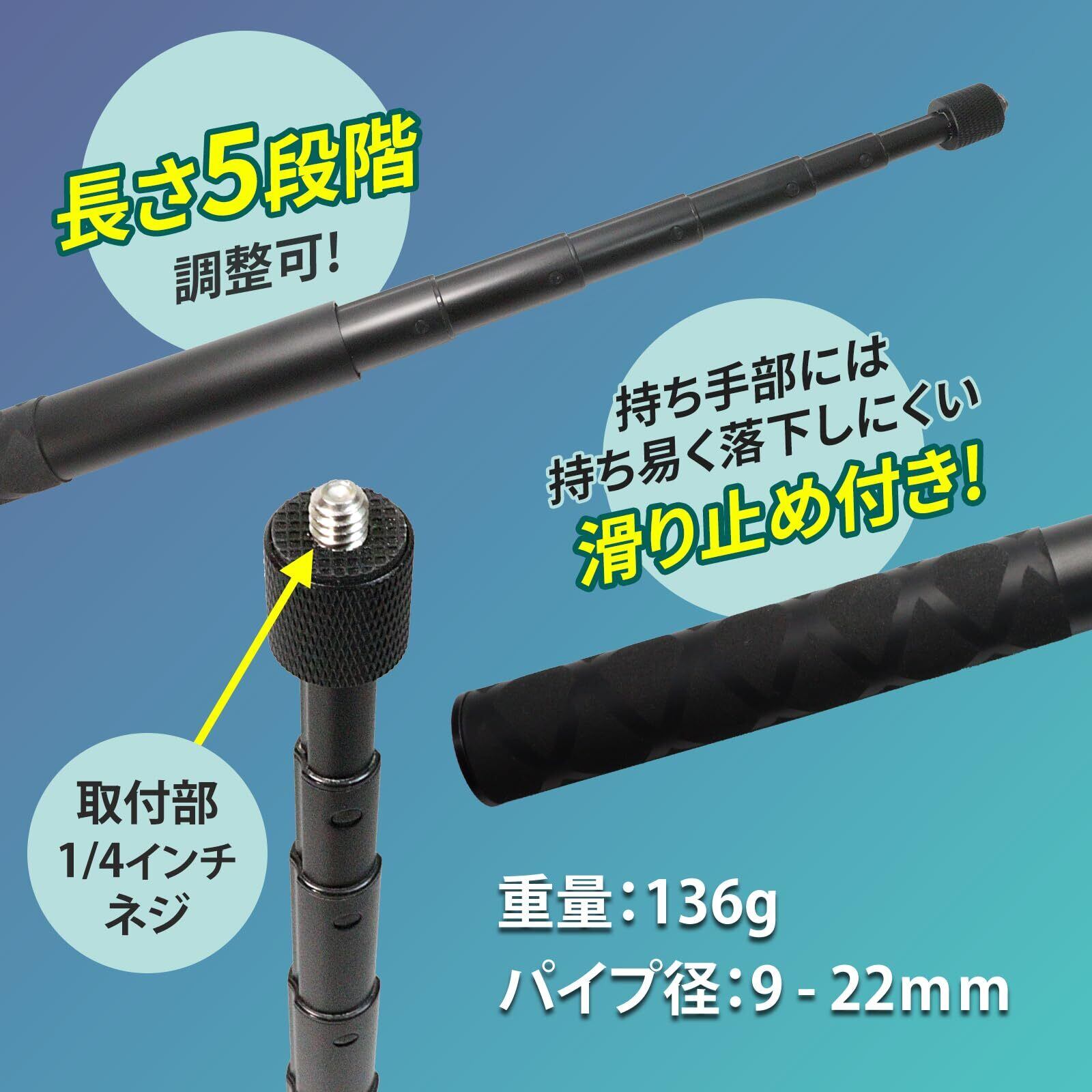 【取り付け部1/4インチのネジ】持ち手には滑り止め付きで落ちにくい設計。使いやすく、女性でも簡単に取り付け・取り外しができます。ストッパーは回すだけ!簡単に好きな長さでお楽しみいただけます