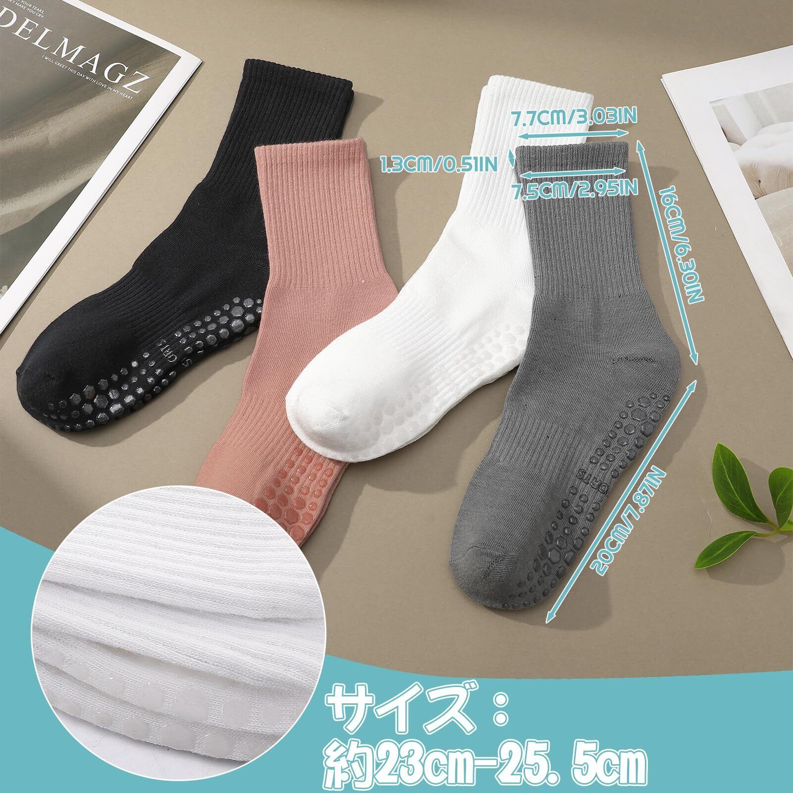 【セット内容】ヨガソックス:4色4足セット。カラー:ブラック、グレー、ピンク、ホワイト、日本サイズ約23cm-25.5cm対応、ほとんどの女性に適します