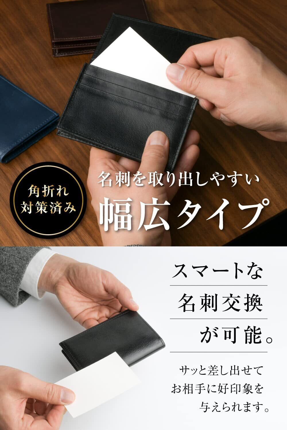 【名刺を取り出しやすい幅広タイプ】一般的な名刺入れより少し幅に余裕を持たせています。取り出しの際につっかえて名刺の角が折れてしまうことはありません。名刺交換の時に名刺を素早く差し出すことができ、お相手にスマートな印象を与えられます。