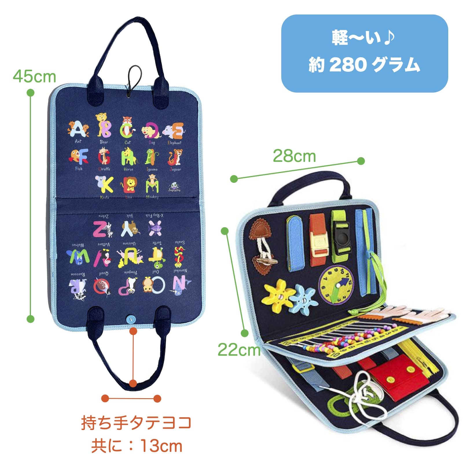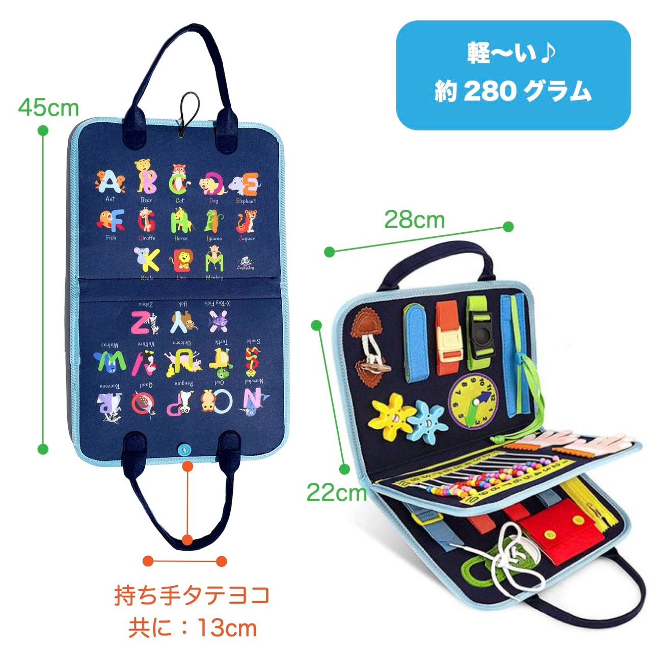 【お着替え 感覚】指先の知育 感覚 玩具 おもちゃ 知育 バッグ 【手先感覚訓練】紐結び・紐通し・ボタン・ベルト など 洋服を 着替える 感覚 で遊びながら 手先 の 指先知育 感覚 を整えます 【仕様】サイズ 折りたたんだ通常の場合 タテ:22cm ヨコ:28cm 厚み:5cm / 拡げた状態の長さ:45cm / 持ち手部分タテ:15cm*ヨコ15cm 重さ : 約 280g 《素材》フェルト生地