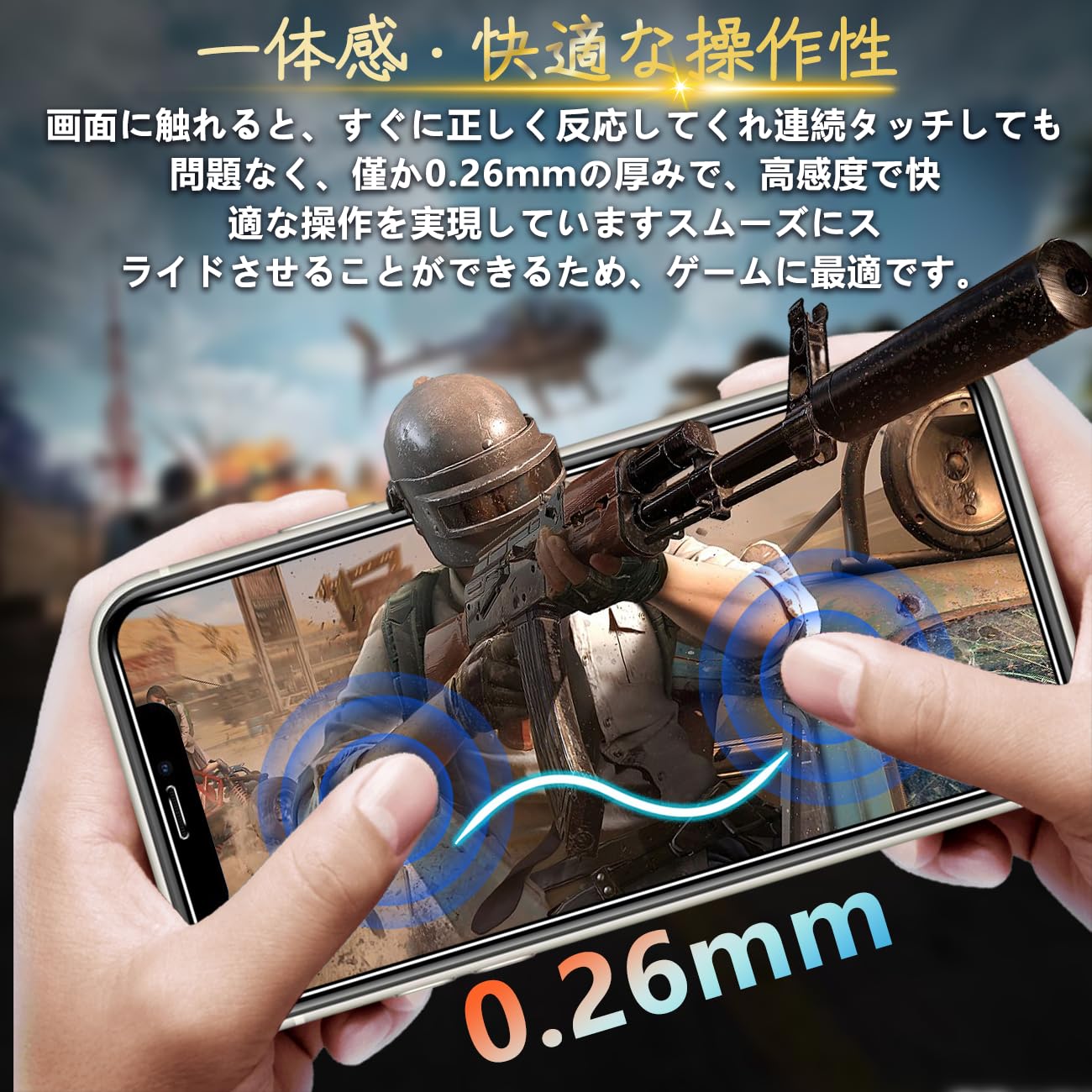 【汚れ防止&指紋防止 / 防水 / 耐油性】 保護フィルム は、石材ナノコーティング層の最新の指紋防止技術を使用していますので、通常フィルム のようなラフなタッチは一切ありません。画面がさらさらで指紋が付きにくい、高感度で快適な操作を実現することができます。スムーズにゲームプレイ体験できる同時に、長時間に楽しむなどの利点もあります。*万が一付着した指紋、水滴、汗、化粧品などは簡単に拭き取れます。市場に出回っている99%の携帯電話ケースに互換します;強化ガラスのサイズは携帯ケースを取り付けるためのスペースを余裕して、両側が浮き上がらないように確保します。何百もの携帯電話ケースにテストした後、99%問題がなく対応できます。
