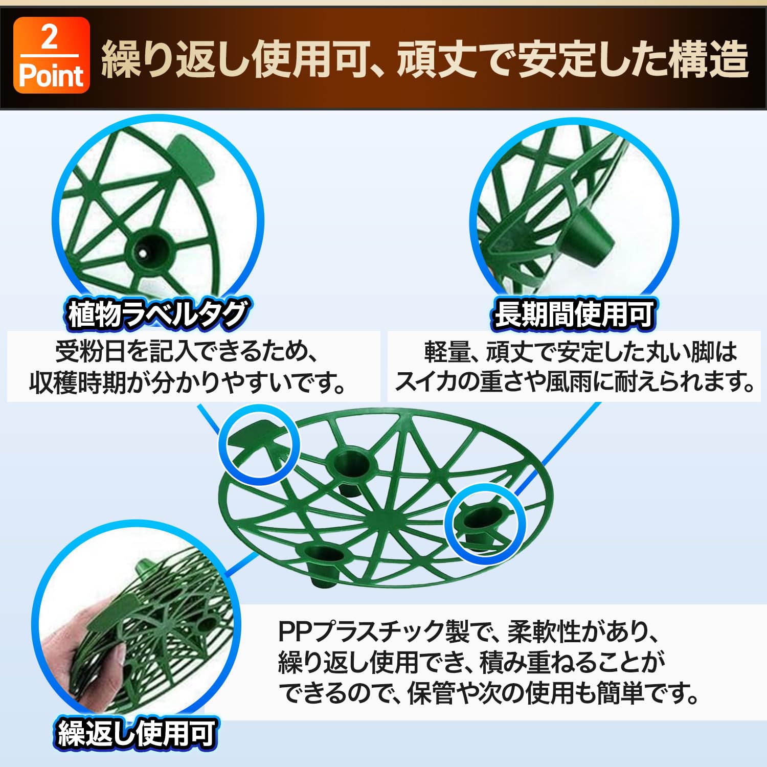 収穫前のスイカを守るための保護マットです! スイカの下に敷くことで空洞をつくり、通気性が向上します。 熟したスイカを虫害や変色から守るために開発された画期的なアイテムです。