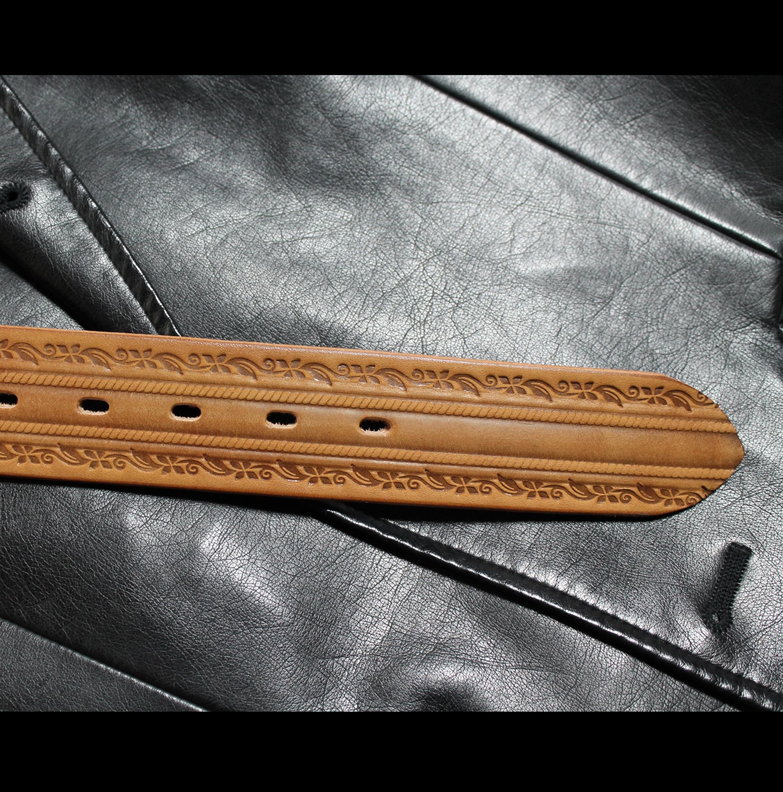 [HANG OVER] 栃木レザー ベルト メンズ 本革 革 牛革 ヌメ革 花柄 栃木レザー社製革使用 4color