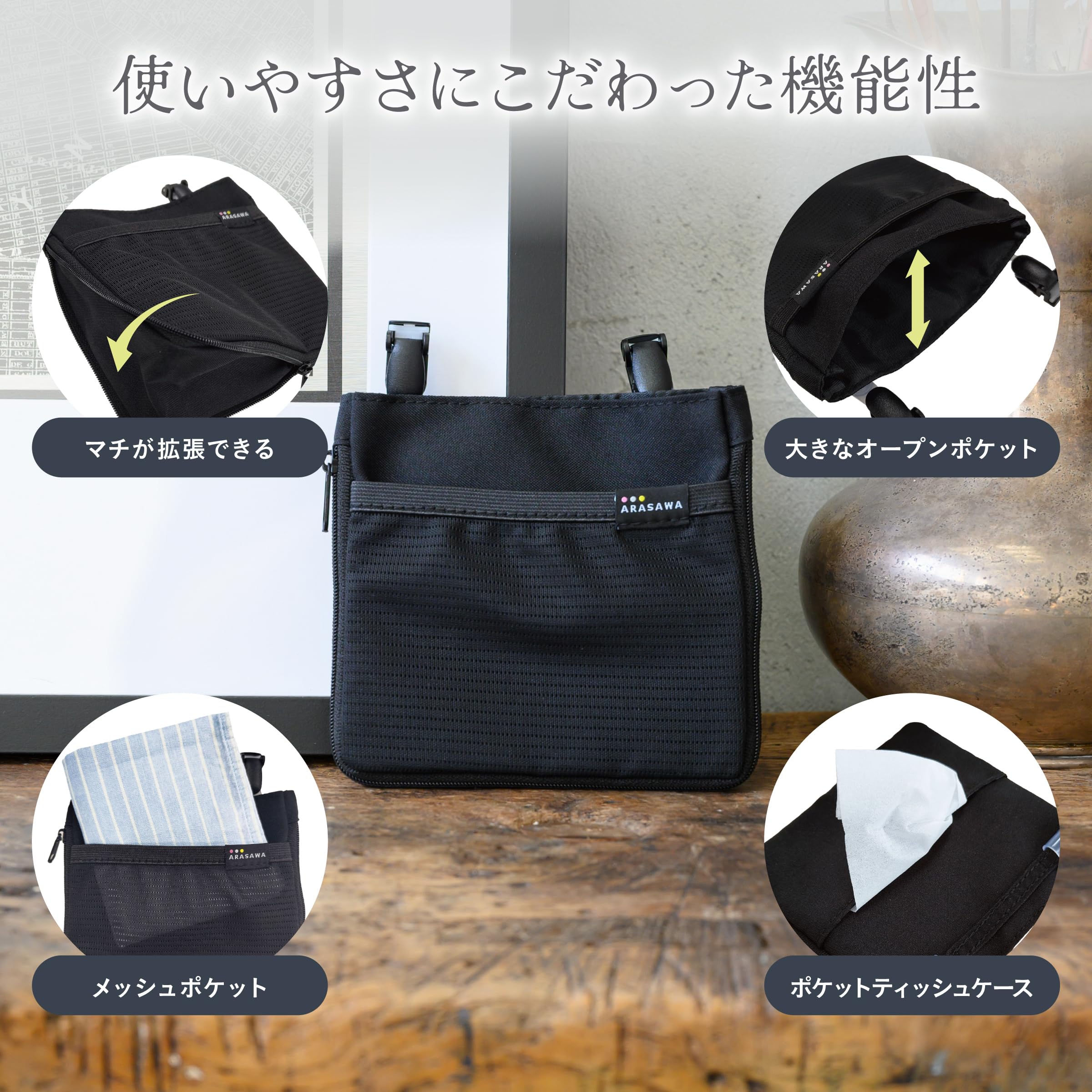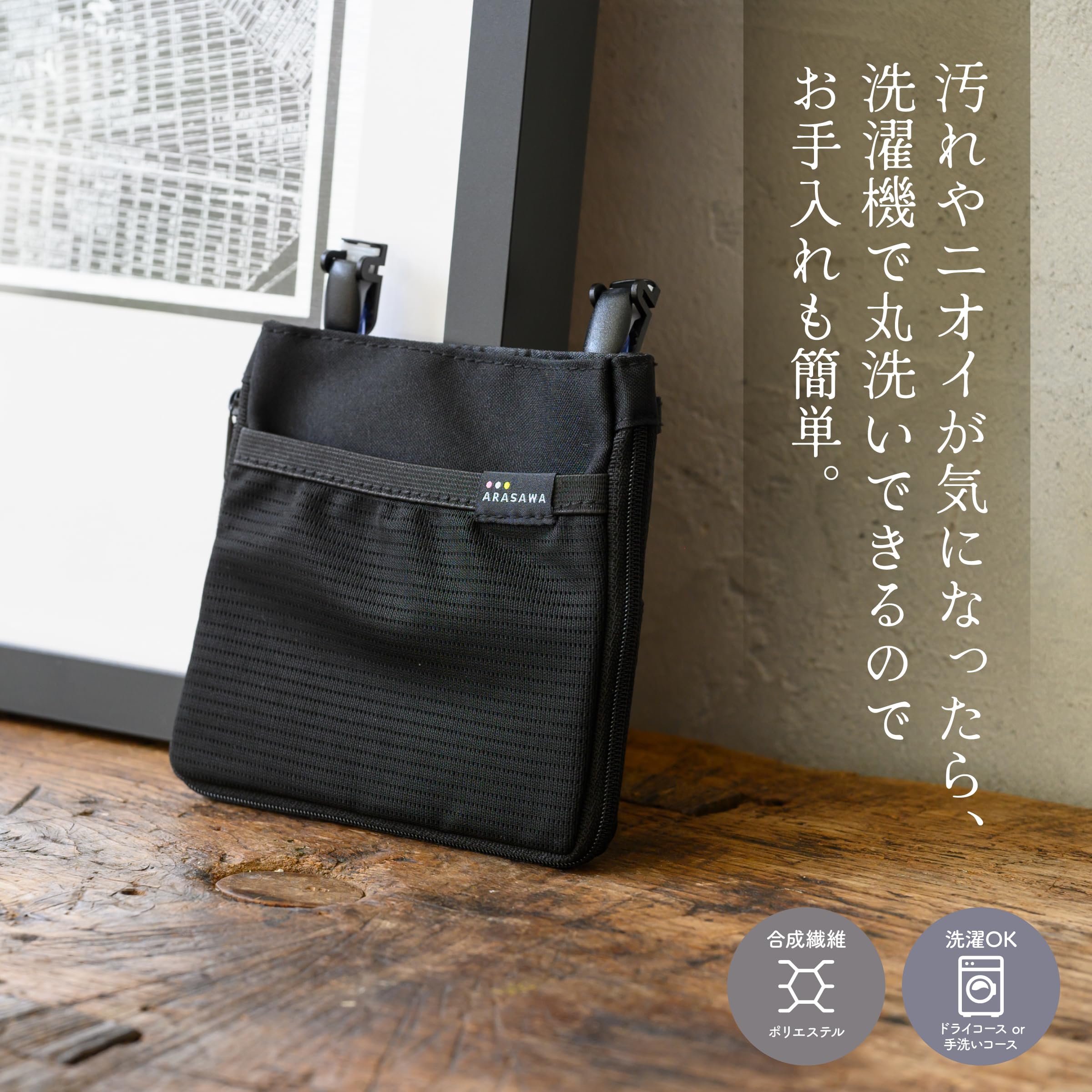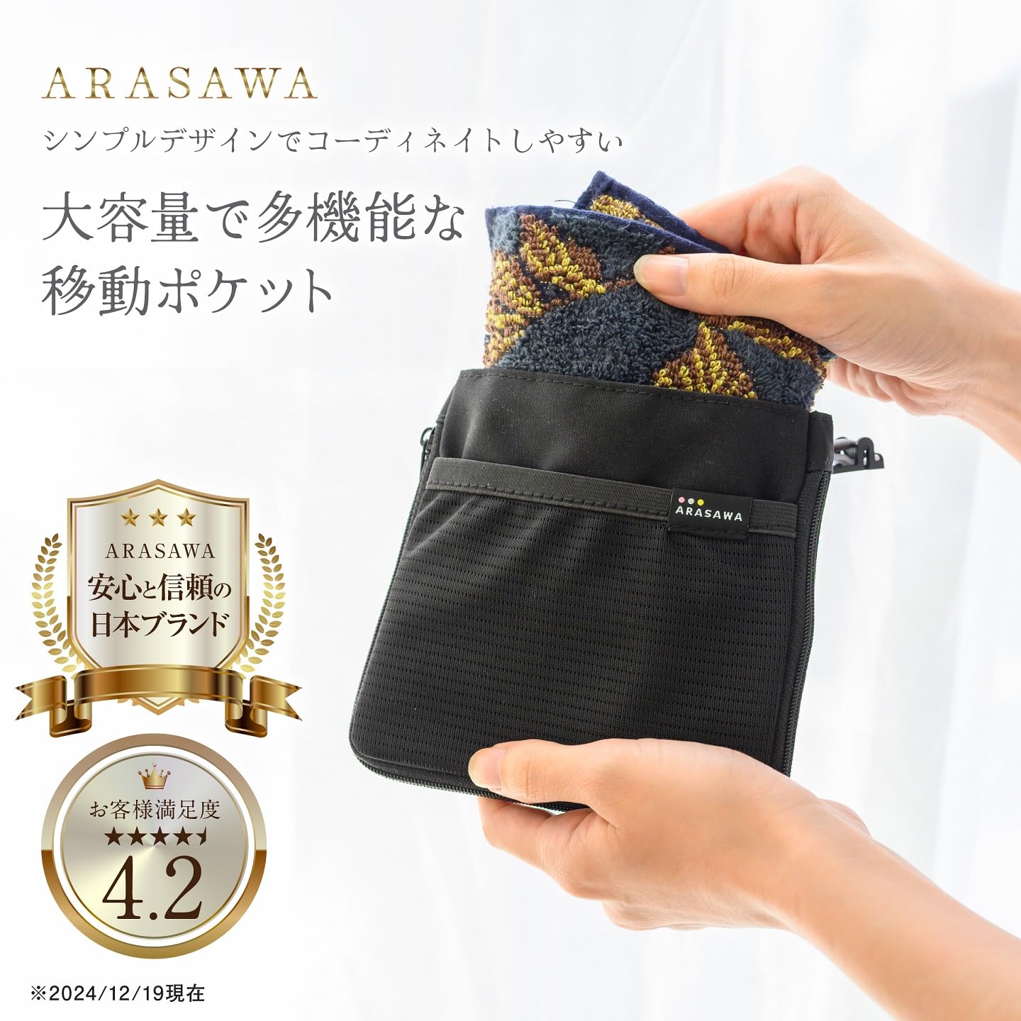 [ARASAWA] 移動ポケット 大容量 マチが広がる 2ポケット 蓋無し シンプル おしゃれ 洗濯可能 シワがつかない