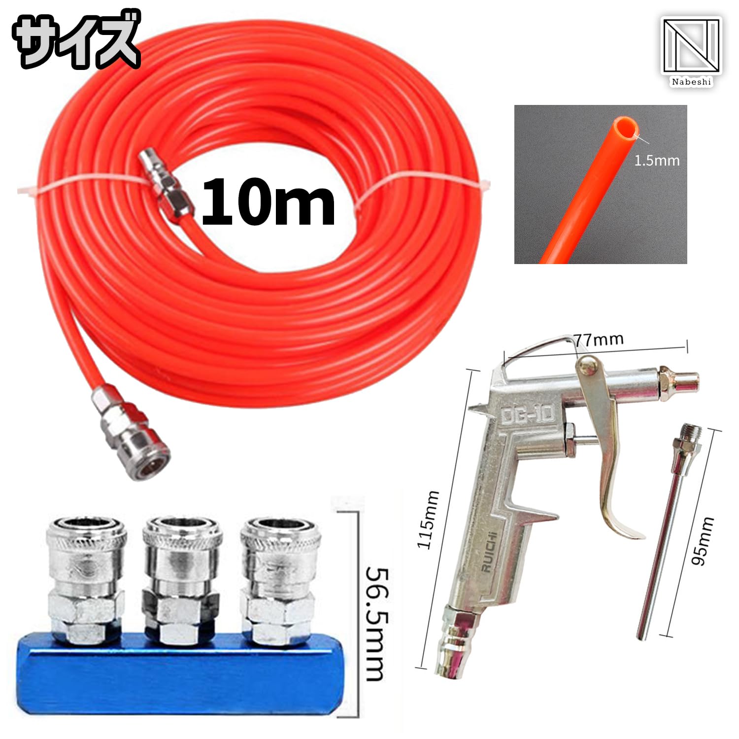NABESHI エアーホース エアーダスター ジョイント セット 分岐 エアーブロー エアホース エア ガン カプラー (エアホース+ダスター+ソケット)