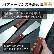【高品質ステンレス製で耐久性抜群】 このステンレスヘラセットは、錆びに強く耐久性に優れた高品質ステンレス素材を採用。過酷な作業環境でも劣化しにくく、長期間にわたって使用できます。軽量設計で扱いやすさも抜群。初心者からプロの現場作業まで幅広い用途に対応し、多くのユーザーに愛用されています。長時間の使用でも負担が少なく、作業の効率を大幅に向上させます。