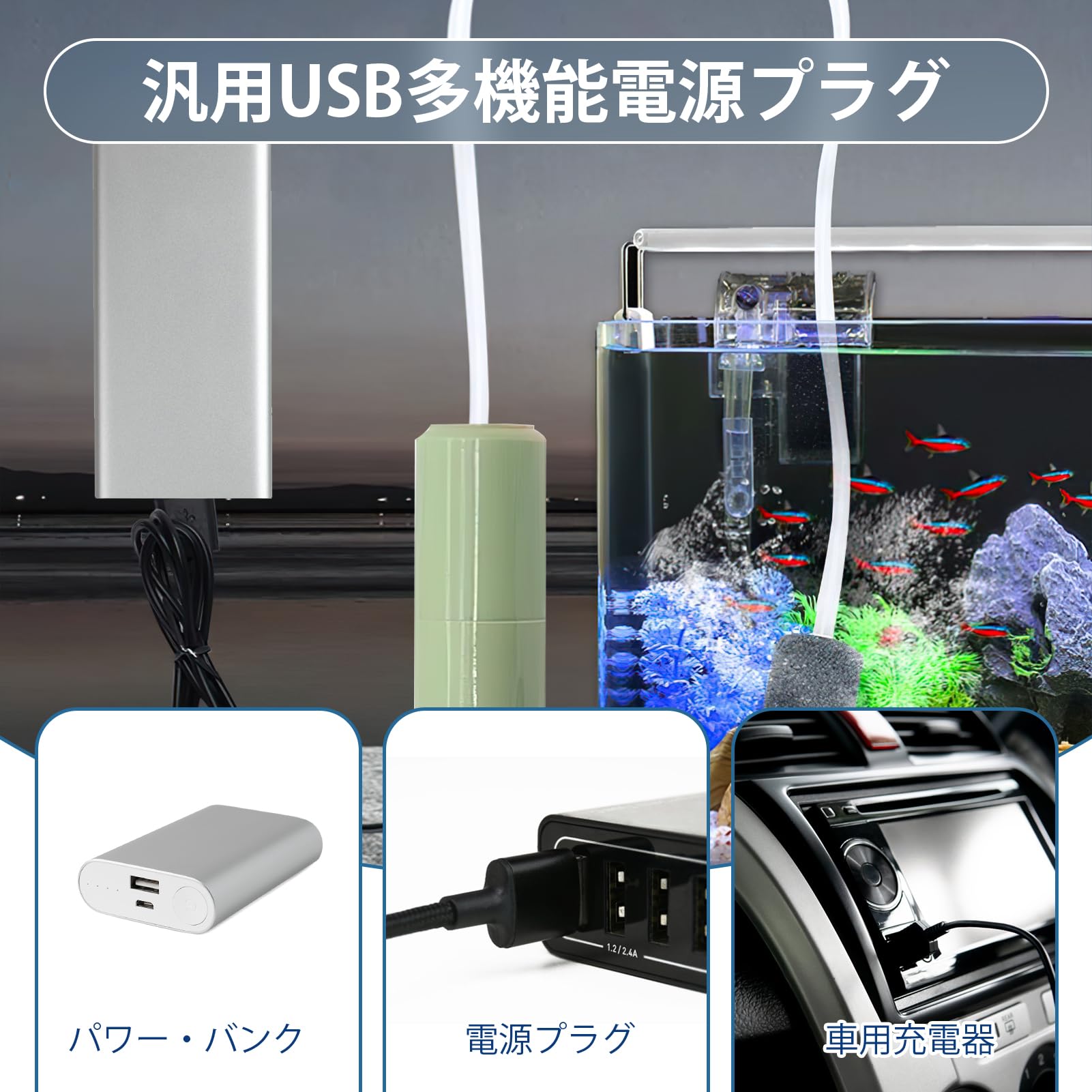 エアポンプ 水槽用 釣り用 usb給電式 水族館の酸素提供ポンプ 携帯式エアーポンプ 小型ポンプ 静音 軽量 金魚 観賞魚 酸素供給