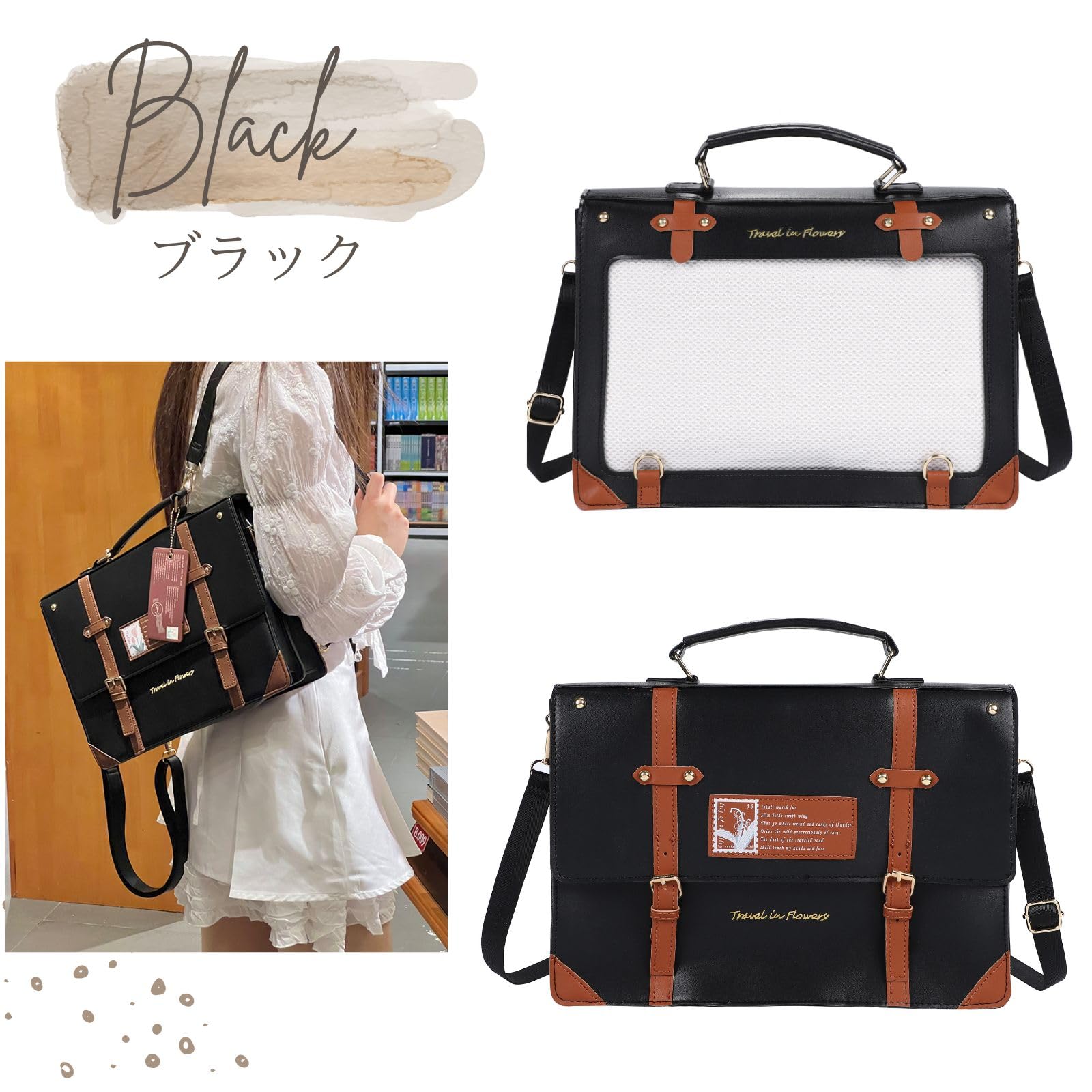 [ハルジオ] 痛バッグ ショルダー 痛バ 隠せる 痛バック ショルダーバッグ サッチェル 大人 推し活バッグ 可愛い いたばっく いたば ハンドバッグ 黒 白 ブラック ホワイト レザー調 おしゃれ 推し活 バック かばん シート