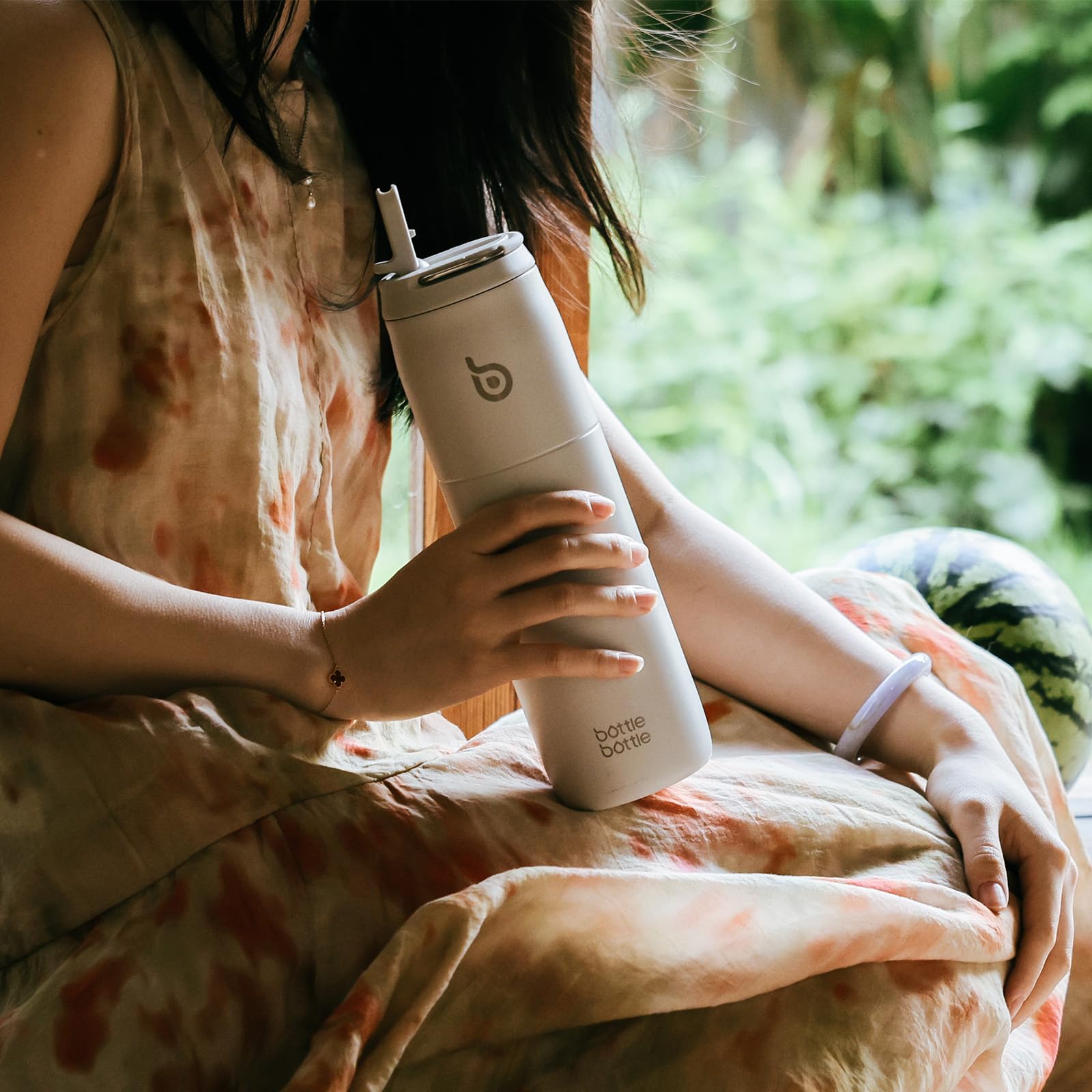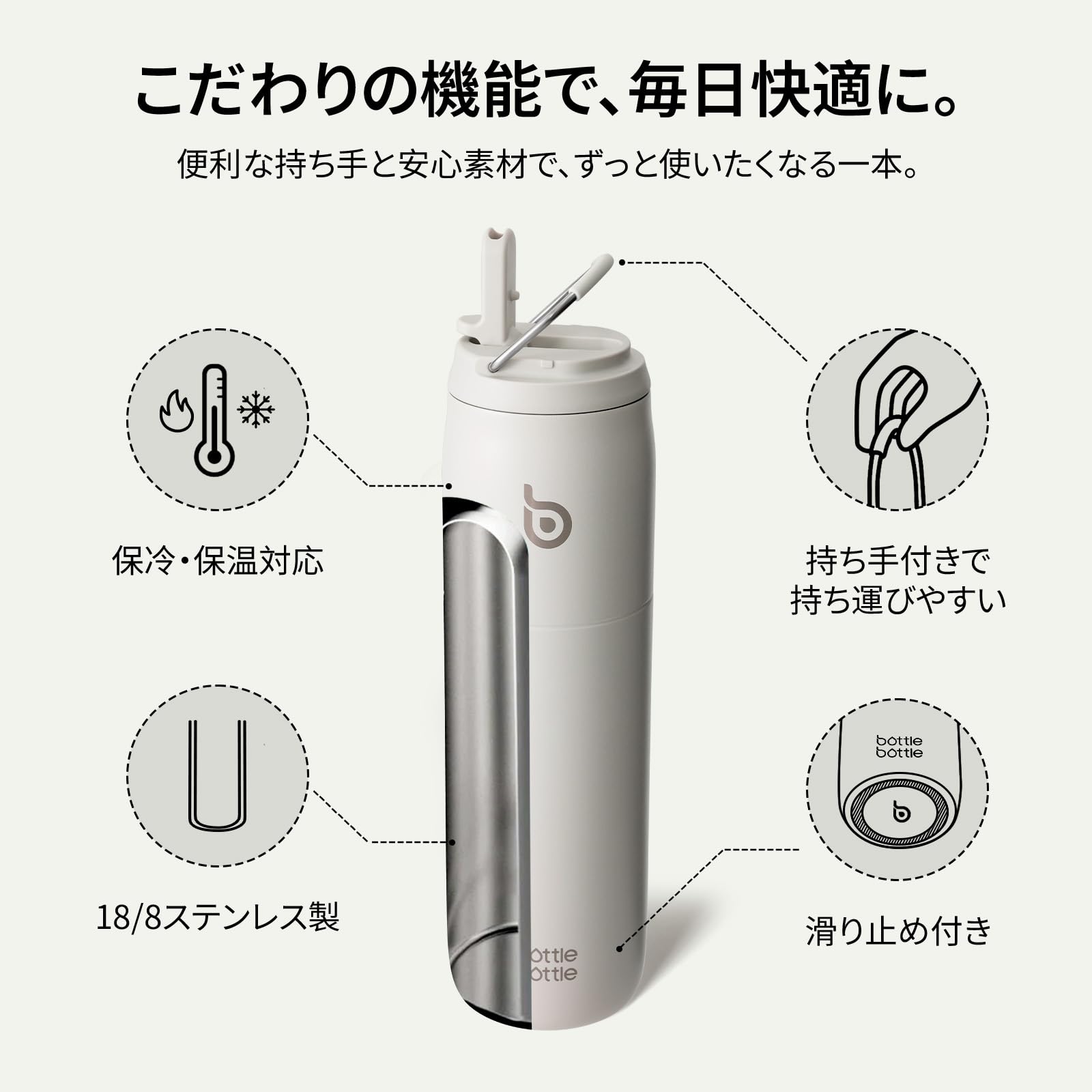 BOTTLE BOTTLE 水筒 1リットル 大容量 1000ml ストロー付き 直飲み 保温保冷 真空断熱 子供 大人 持ち手付き おしゃれ 1L ボトル ステンレス 魔法瓶 二重構造 女の子 男の子 持ち運び スポーツ アウトドア ライトグレー