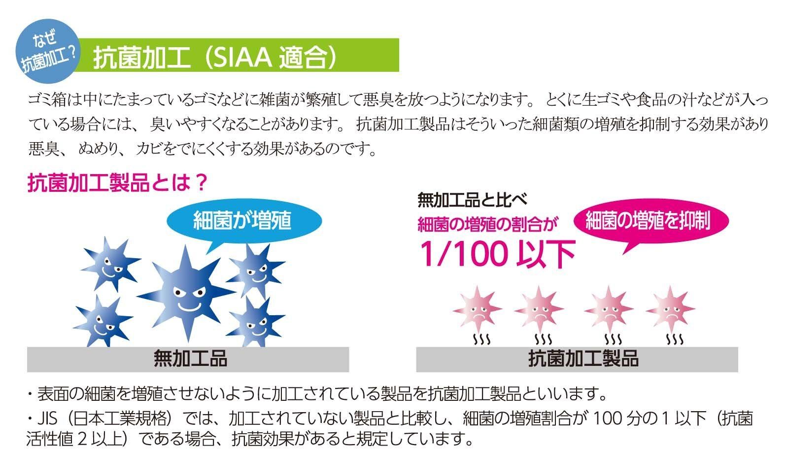 抗菌加工(銀イオンAg+)で菌の増殖を抑え、カビが発生しにくく、清潔に使用できるペール