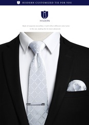 [HISDERN] A3-03 結婚式 ネクタイ チーフ クリップ 3点セット シルバー 幅8.5cm ギフトボックス付き 高級 光沢 フォーマル 礼服用 披露宴 紳士用