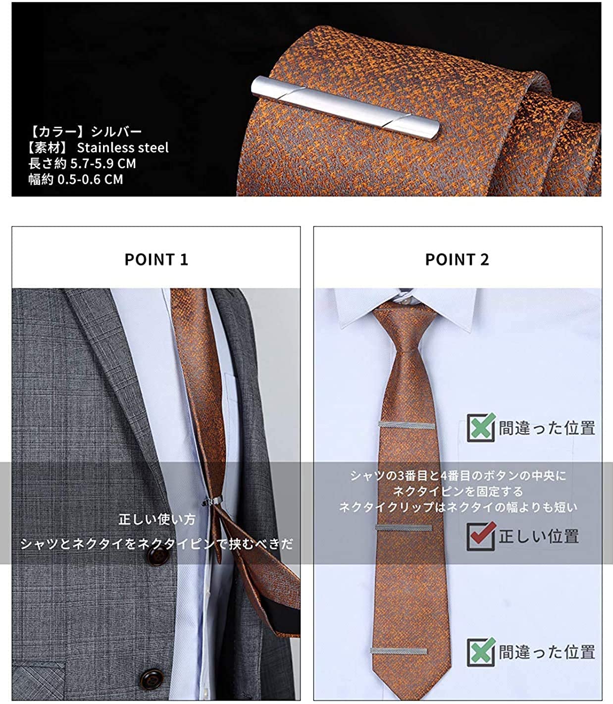 「セット内容」ネクタイ 1本:幅 8.5cm*長さ 150cm┃ポケットチーフ 1本:31cm31cm┃ネクタイピン:6mm*60mm