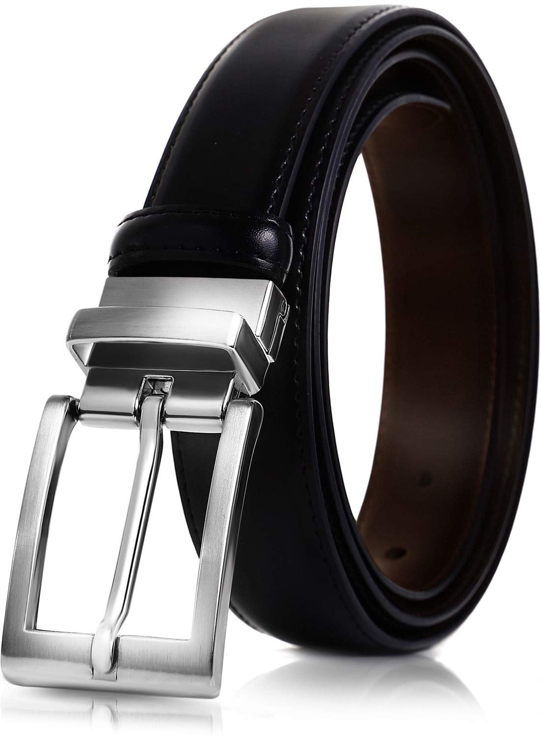 両面とも使える、サイズ調整可能なブラックxブラウンレザーベルト 専用ギフトボックス、ベルトループ2色付属