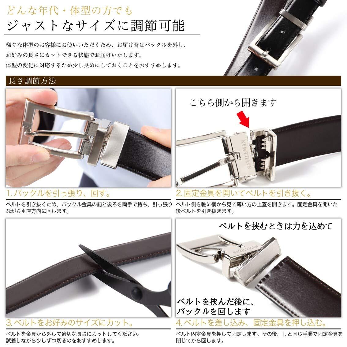 [サヴィルマン] 【黒X茶のリバーシブル】 ベルト メンズ ビジネス 紳士 リバーシブル おおきいサイズ レザー (ブラック ブラウン 1)