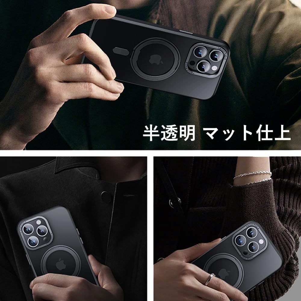 iPhone 11 Pro 用 ケース Magsafe対応 アイフォン11プロ カバー 360度回転スタンド 縦横両対応 Uovon スマホケース アイホン11pro 携帯ケース ワイヤレス充電 車載ホルダー対応 ストラップ穴付き 半透明 指紋防止 黄变防止 ・ ブラック