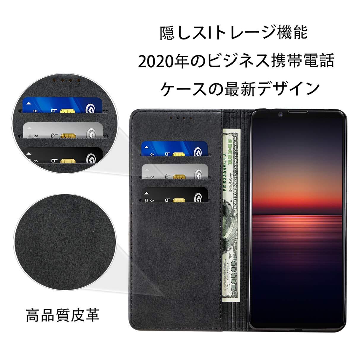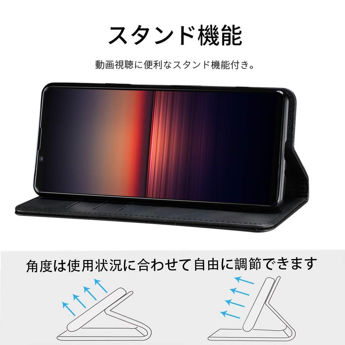 Xperia 5 III ケース 手帳型 高質PUレザー Xperia 5 III カバー エクスペリア 5 III ケース SO-53B ケース SOG05 耐衝撃 内蔵マグネット開閉式 ベルトなし スマホケース おしゃれ カードポケット スタンド機能 便利 スプラット同梱 携帯ケース(ブラック)