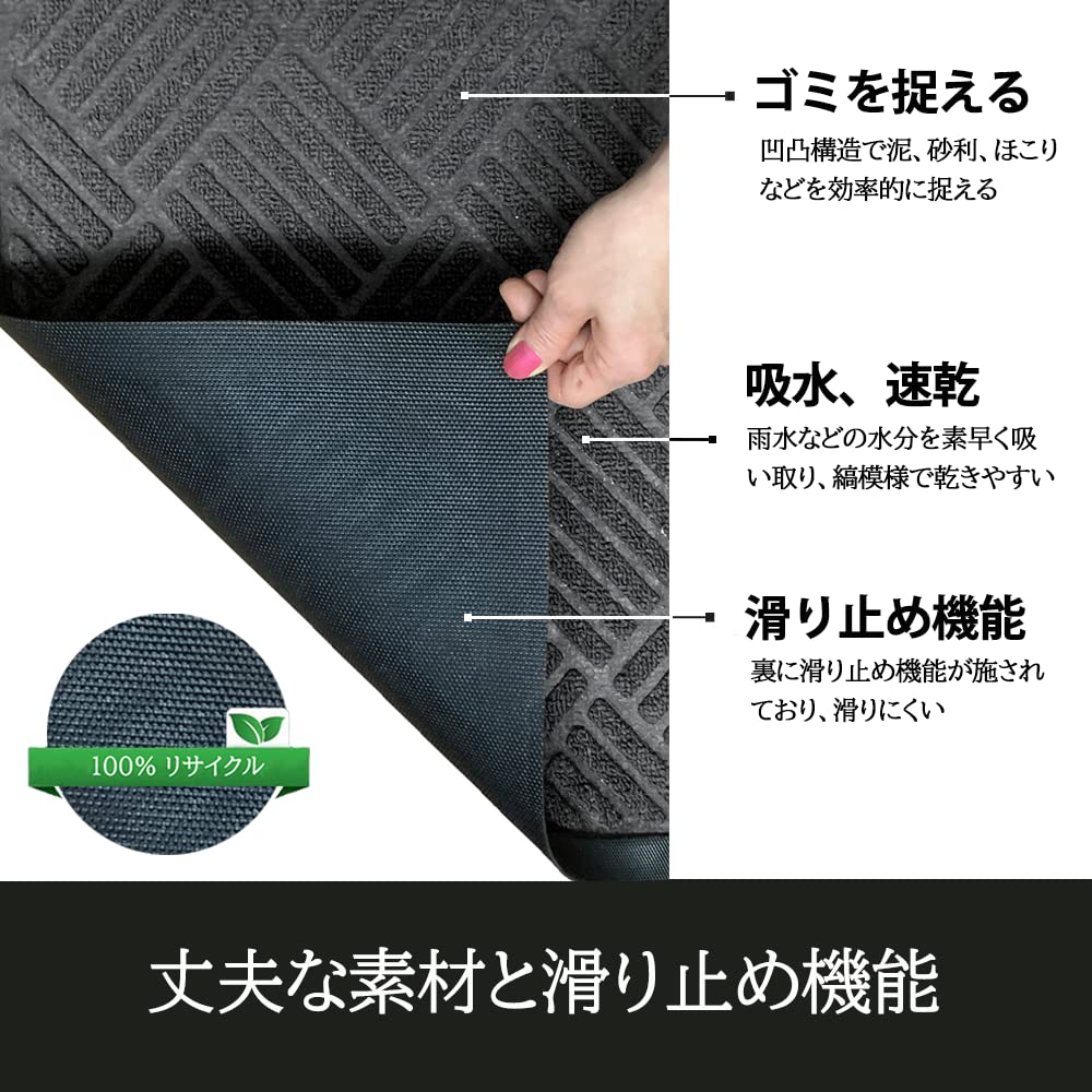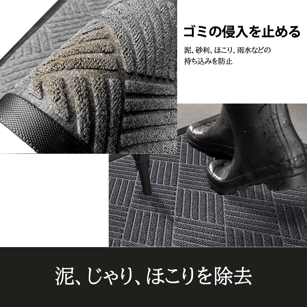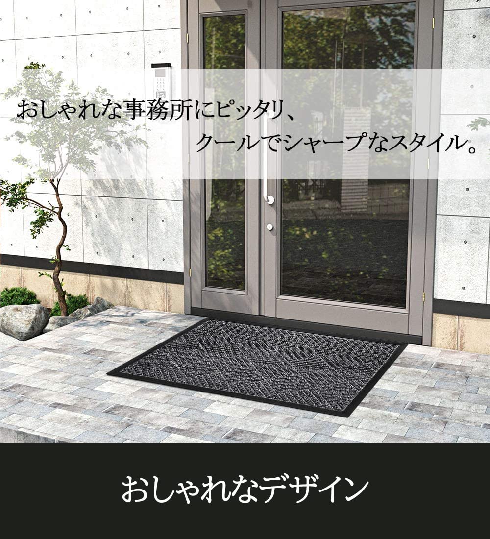 CHICHIC玄関マット 屋外 泥落とし 滑り止め 吸水 店舗用玄関マット 業務用 家庭用 約40×60㎝ グレー 菱模様03