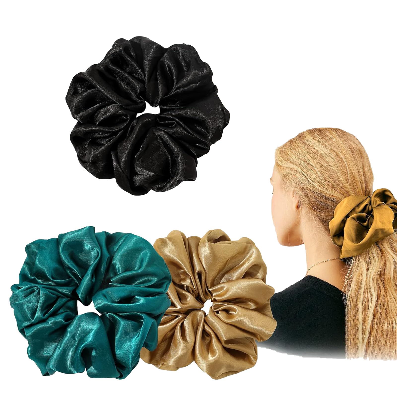 Aurooooa シルクヘアゴム 3本セット ブラック・ピーコック・ブルー・シャンパン 髪留め シルクヘアタイ シルク ヘアゴム おしゃれ シュシュ まとめ髪 きれいな髪飾り 無地 静電気防止 ヘアアクセサリー 女性 レーディス 大人可愛い プレゼント