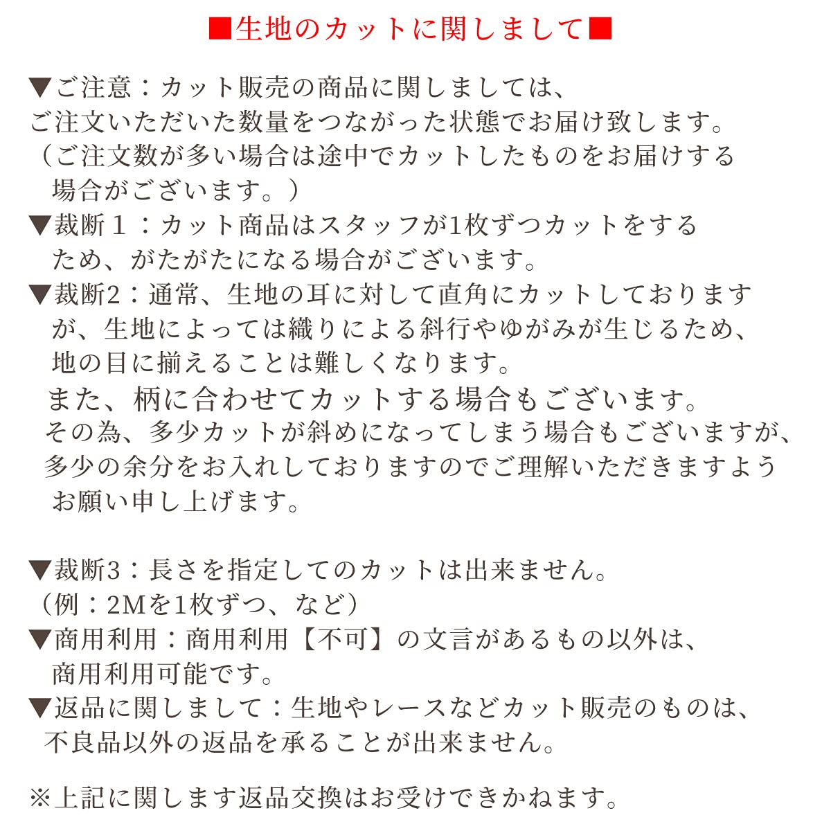 水通し後の返品交換は承ることが出来ません。
