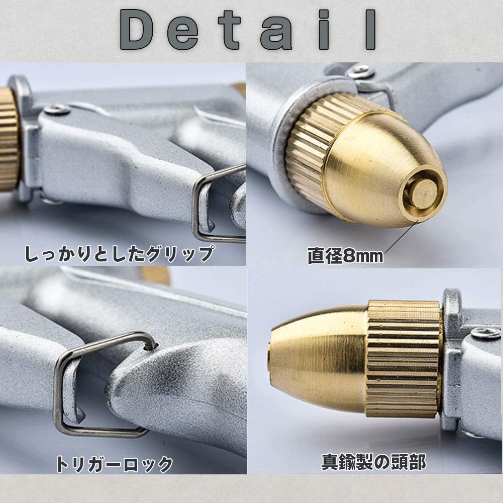 【高圧洗浄】 ヘッドを左から右に回転させることで、細かい霧/適度なシリンジ/ジェット力から柔軟に調節可能。 【漏れ防止】ワンピースのデザインとゴムホースワッシャーは、耐久性と密閉性を備えています。 【100%の金属】(真鍮のステンレススチールトリガー、真鍮のノズル&亜鉛合金のボディ)は、プラスチック製のノズルやスーツより耐久性に優れています。 【3段階ノズルでさまざまなシーンへ】快適なピストルグリップ。 プロの車/オートバイ、庭/芝生の給水また、洗濯するために、バスルーム、キッチン、バルコニー、廊下、カーペットなどに使用することができます。