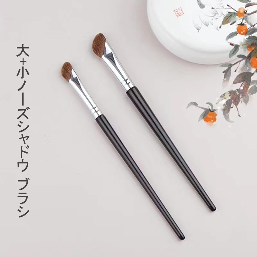 Phyxiul ノーズシャドウ 斜め メイクブラシ 2本入り 大+小 鼻輪郭ブラシ ノーズブラシ ノーズシャドウ ブラシ 斜め ポニー毛 動物毛 すべての肌タイプに対応