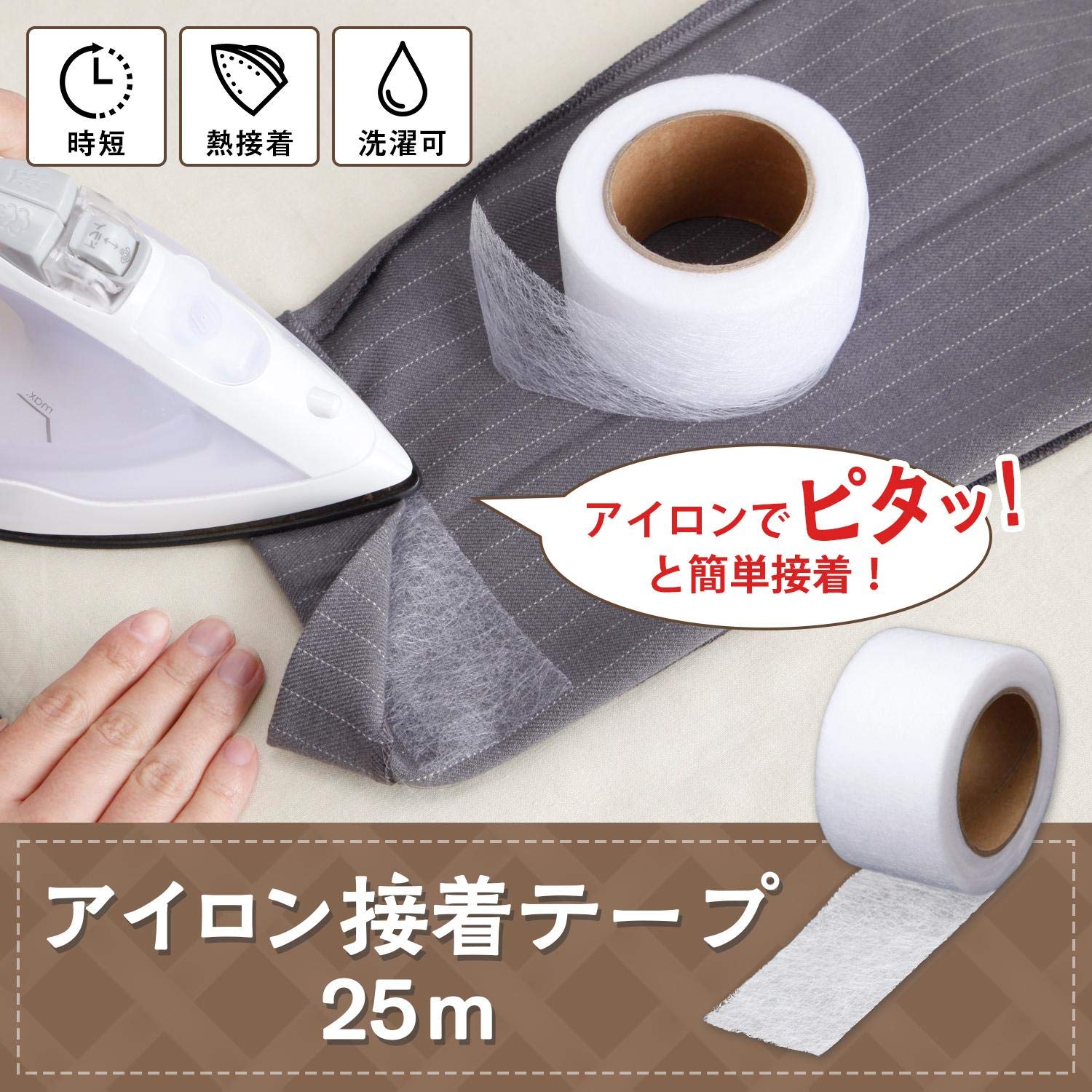 コモライフ アイロン接着テープ 25m 布用 熱接着 裾上げ テープ 洗濯OK 仮縫い 衣装製作 補修 手芸 衣服