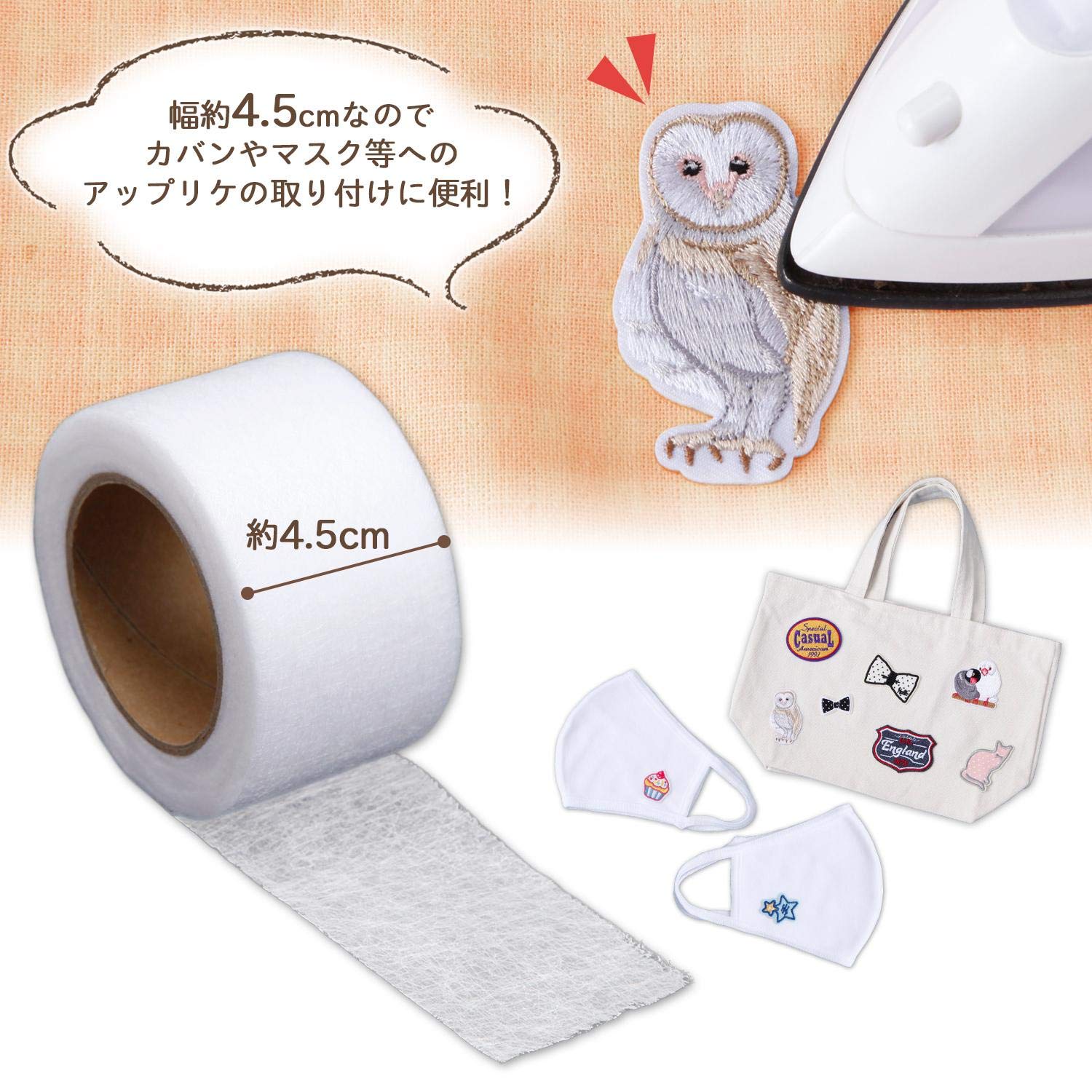 幅広で洗濯可能なので、アップリケ等の装飾の取り付けやゼッケンの貼り付けなどにも使えます。
