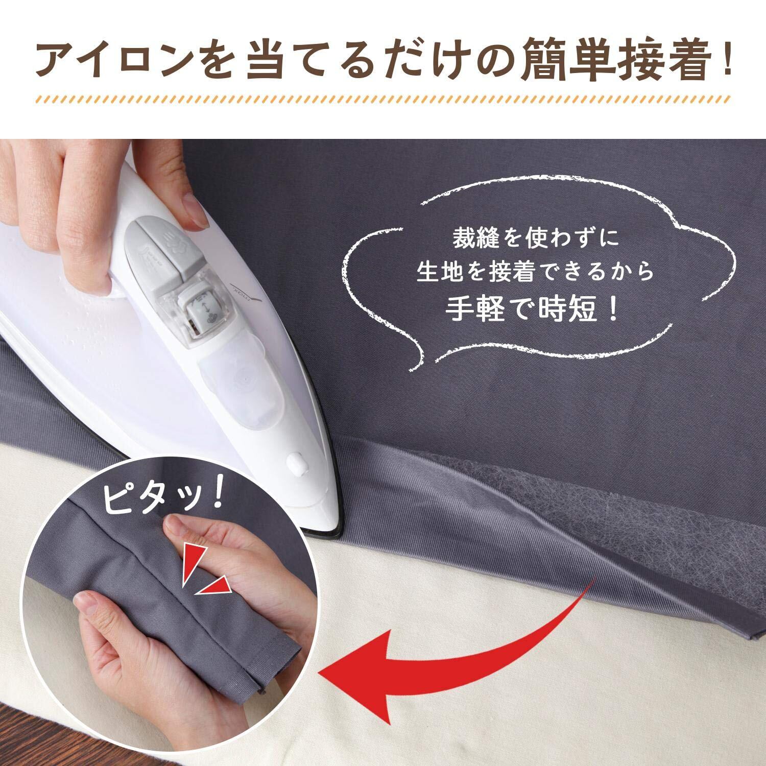 アイロンを当てるだけで簡単生地を接着できます。
