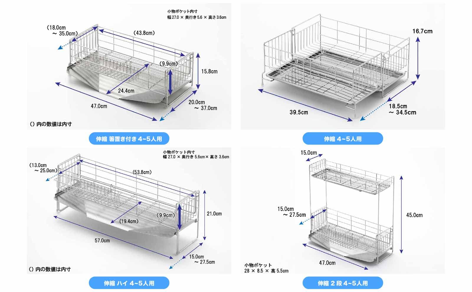 水切りバスケット内寸:18~35×43.8×9.9cm、重量:1.02kg