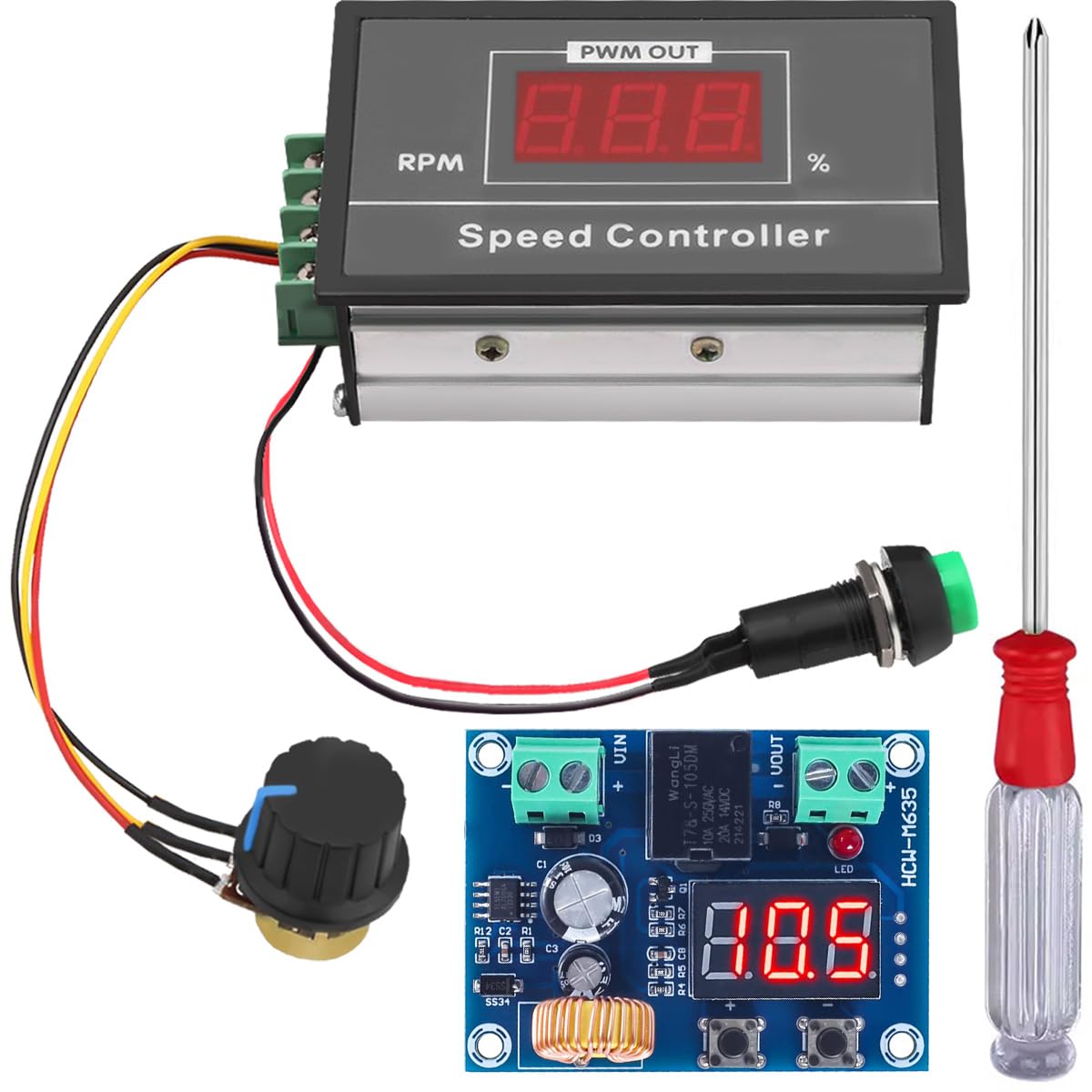 パッケージ内容: DC 6~60V 30A デジタルディスプレイモータースピードコントローラー1個、12V 過放電保護モジュール1個、ミニドライバー1個。